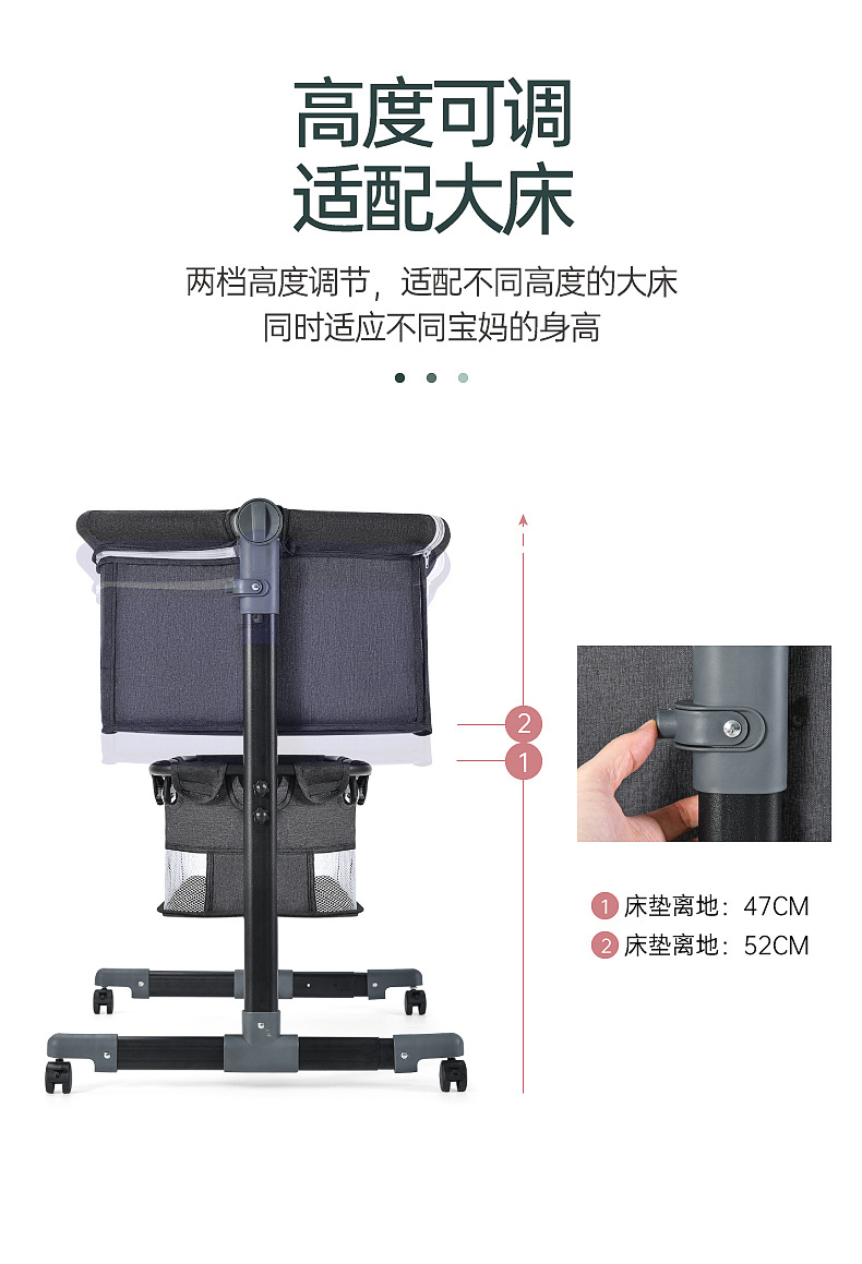 婴儿床可移动便携式摇篮床可折叠可升降多种功能bb床新生儿拼接大床
