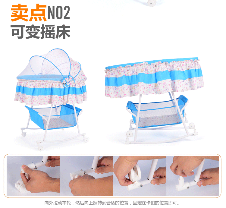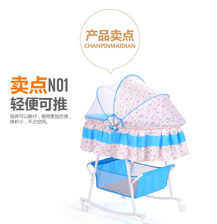 婴儿摇篮床小摇床新生儿床摇摇床带蚊帐多功能安抚bb床带滚轮睡篮