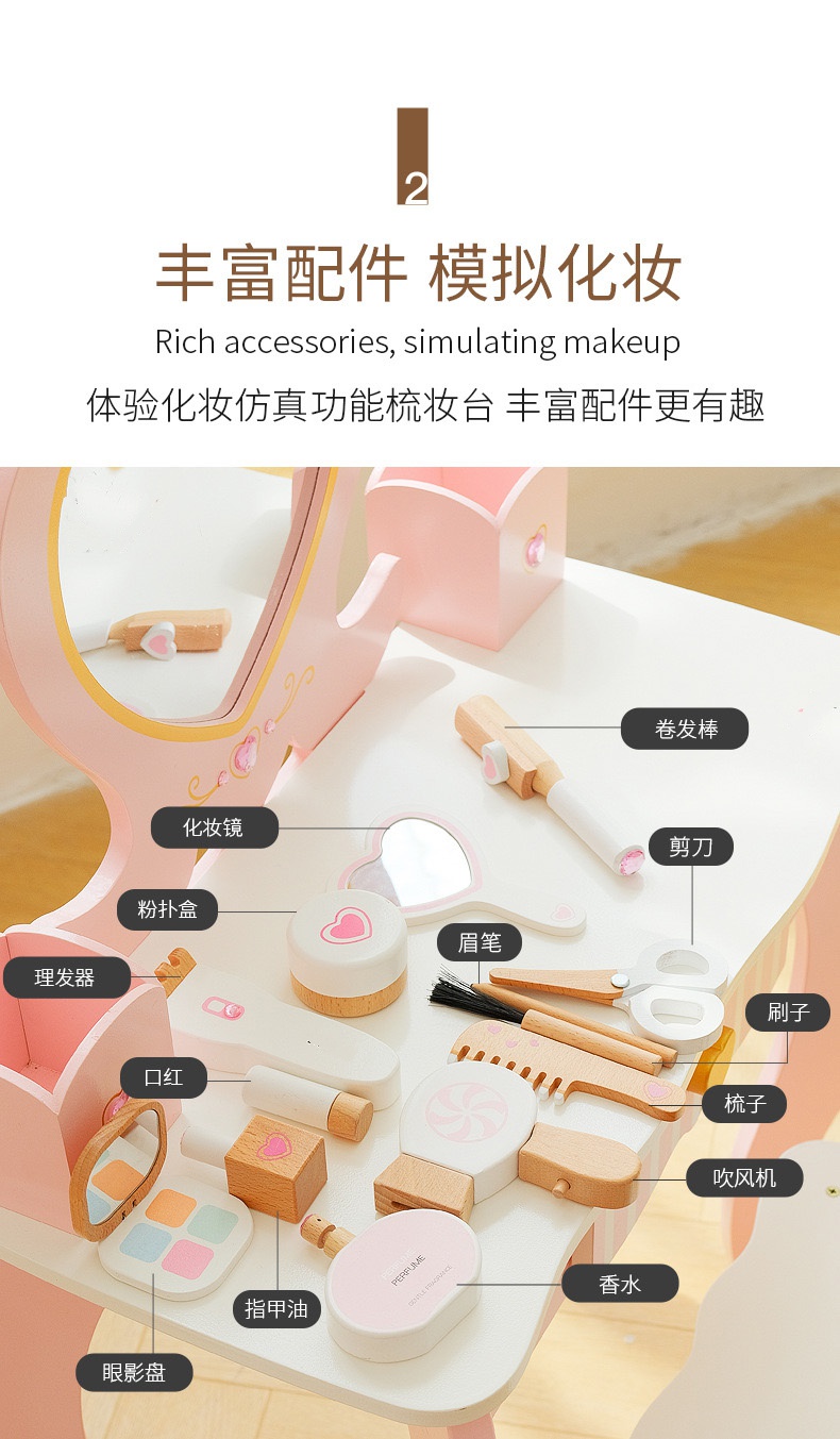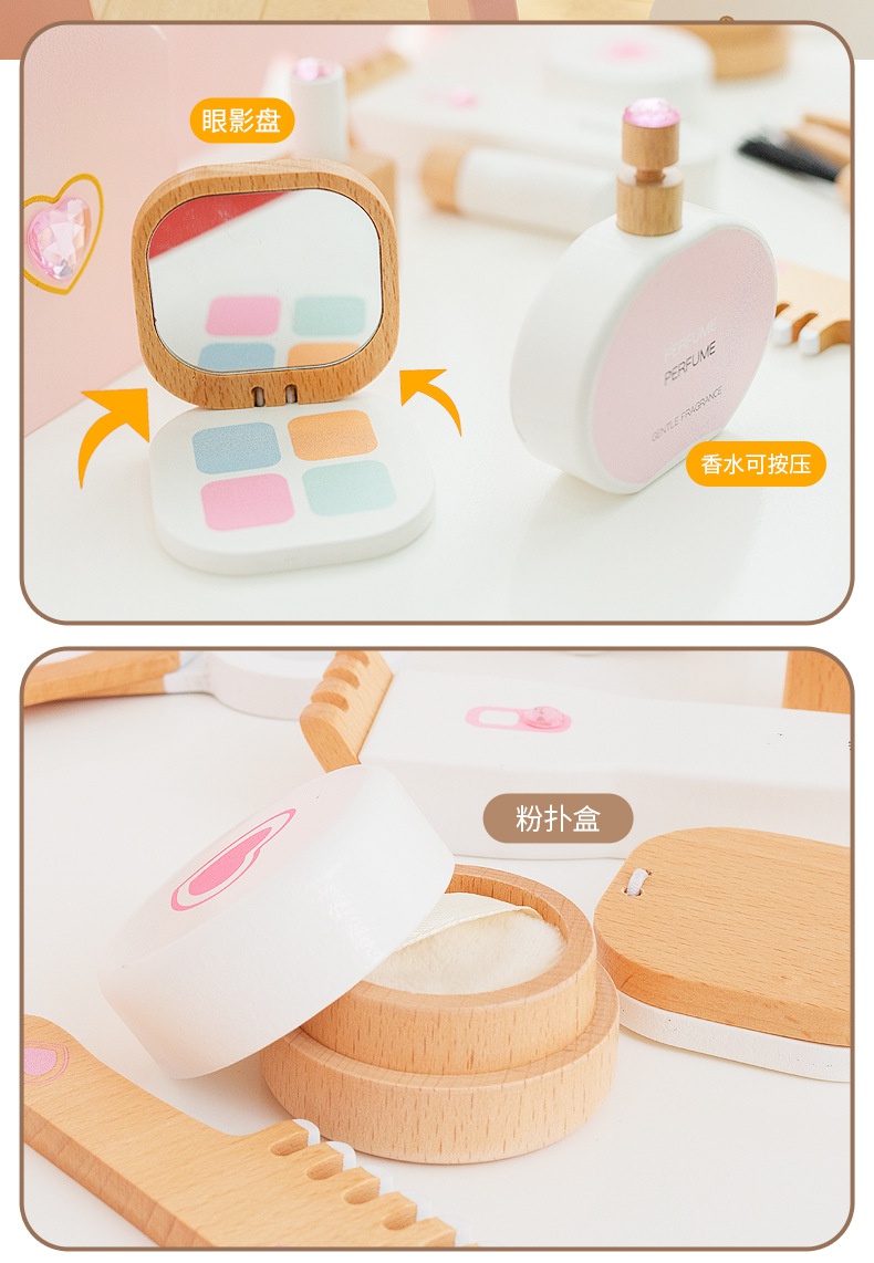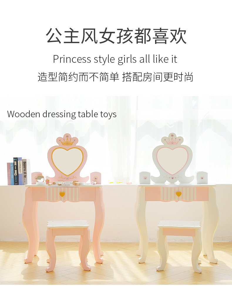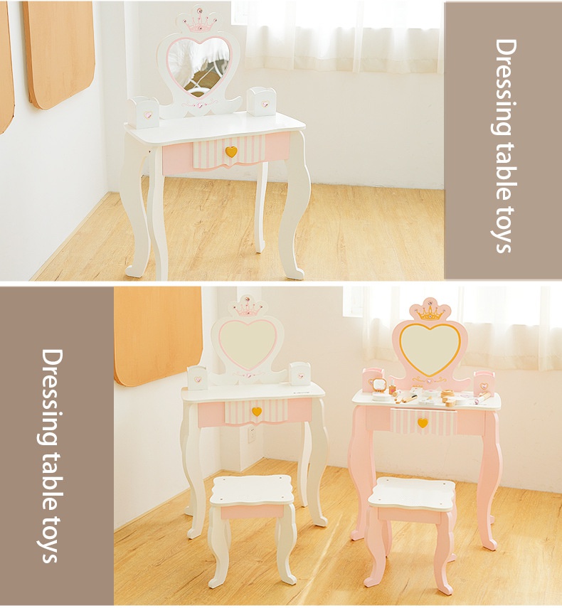 儿童木质梳妆台女孩公主化妆品玩具套装首饰盒过家家生日周岁礼物