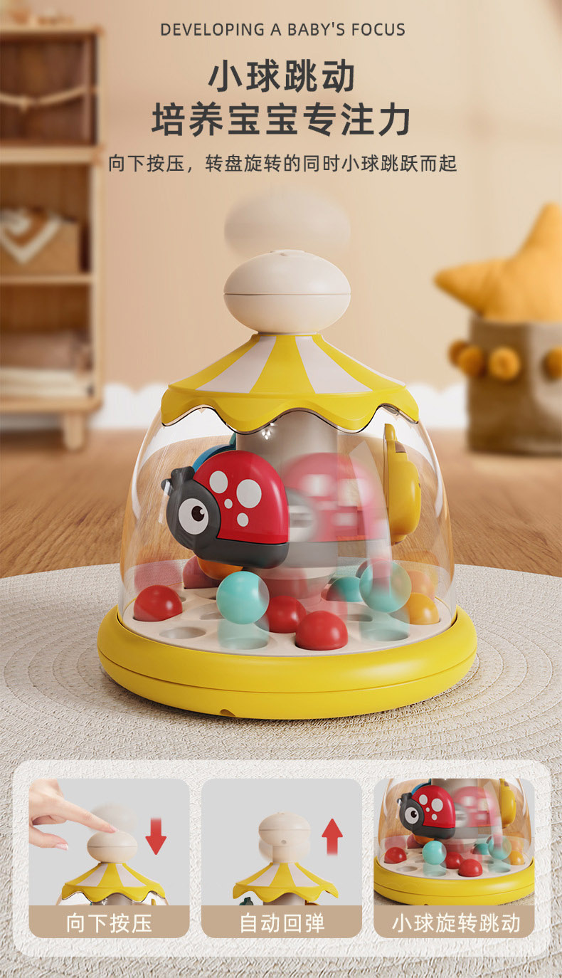 新品按压旋转跳球婴儿玩具0-1岁哄娃神器早教益智磁性玩具