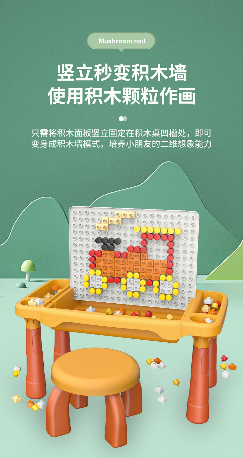 Compatible with LEGO bricks, large particles, children's multi-functional building block table assembly, educational toys, mushroom nail, building block splicing