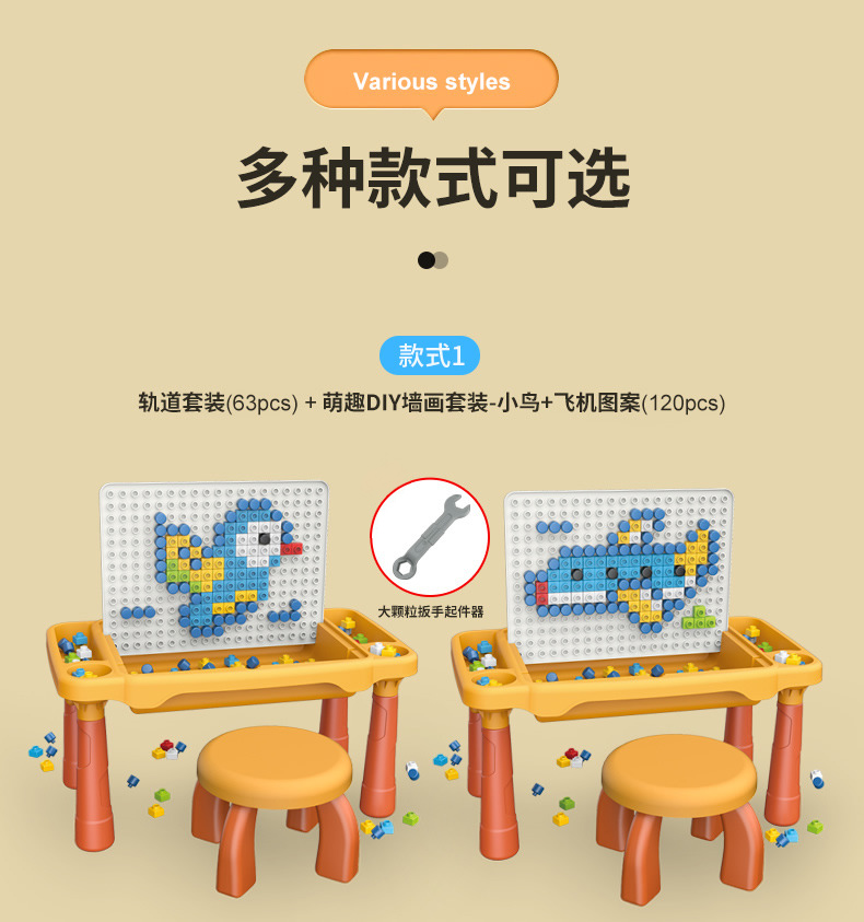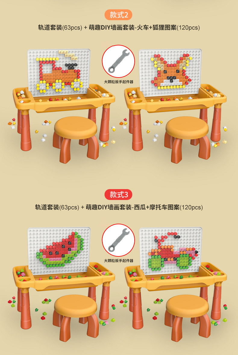 Children's building block table magnetic drawing board table 2 in 1 frame style color building block drawing board writing study table baby toys ¥55.00