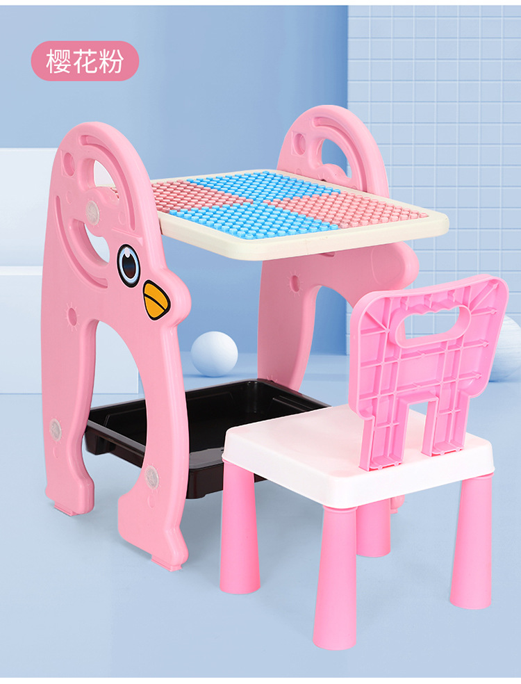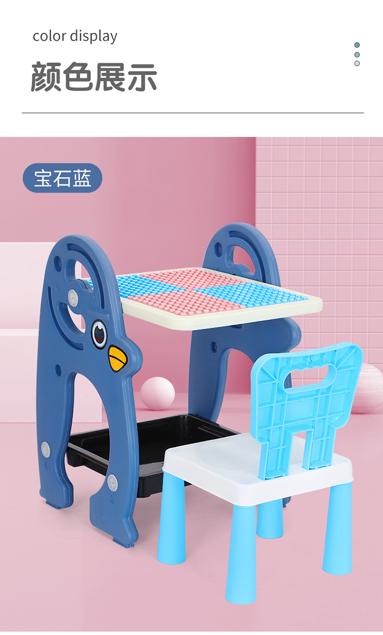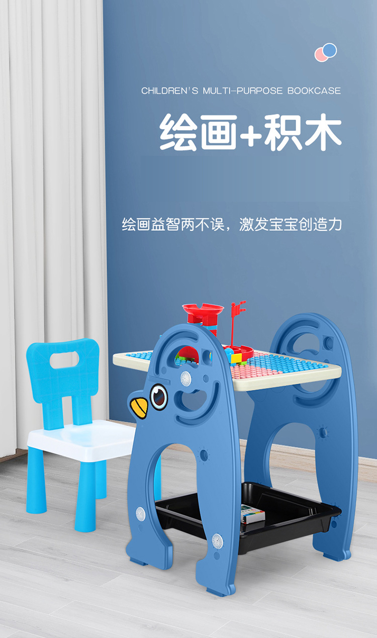儿童积木桌磁性画板桌二合一架式彩色积木画板写字学习桌宝宝玩具