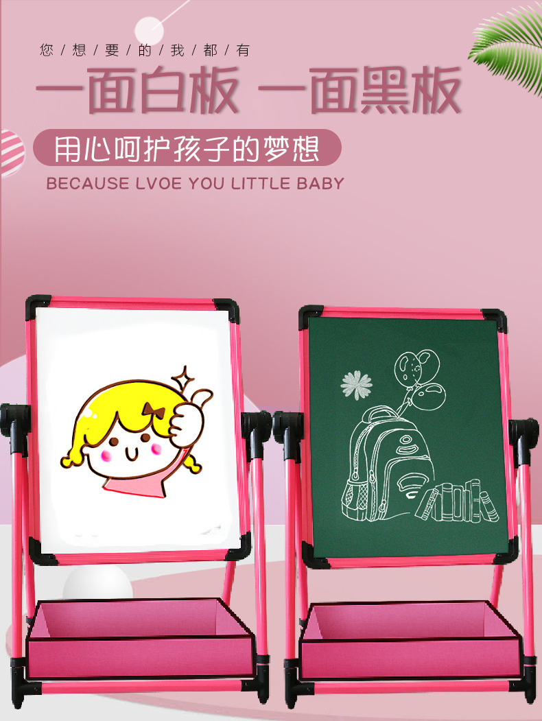 儿童磁性画板写字板塑料双面可升降支架式画架家用涂鸦美术小黑板