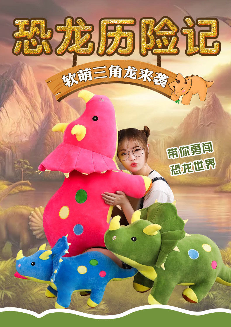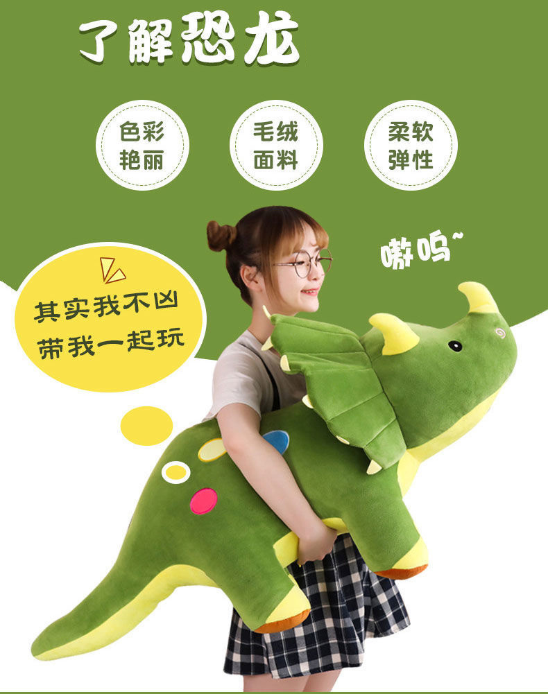 偶睡觉抱枕男孩女孩礼物三角龙布娃娃生日公仔毛绒恐龙