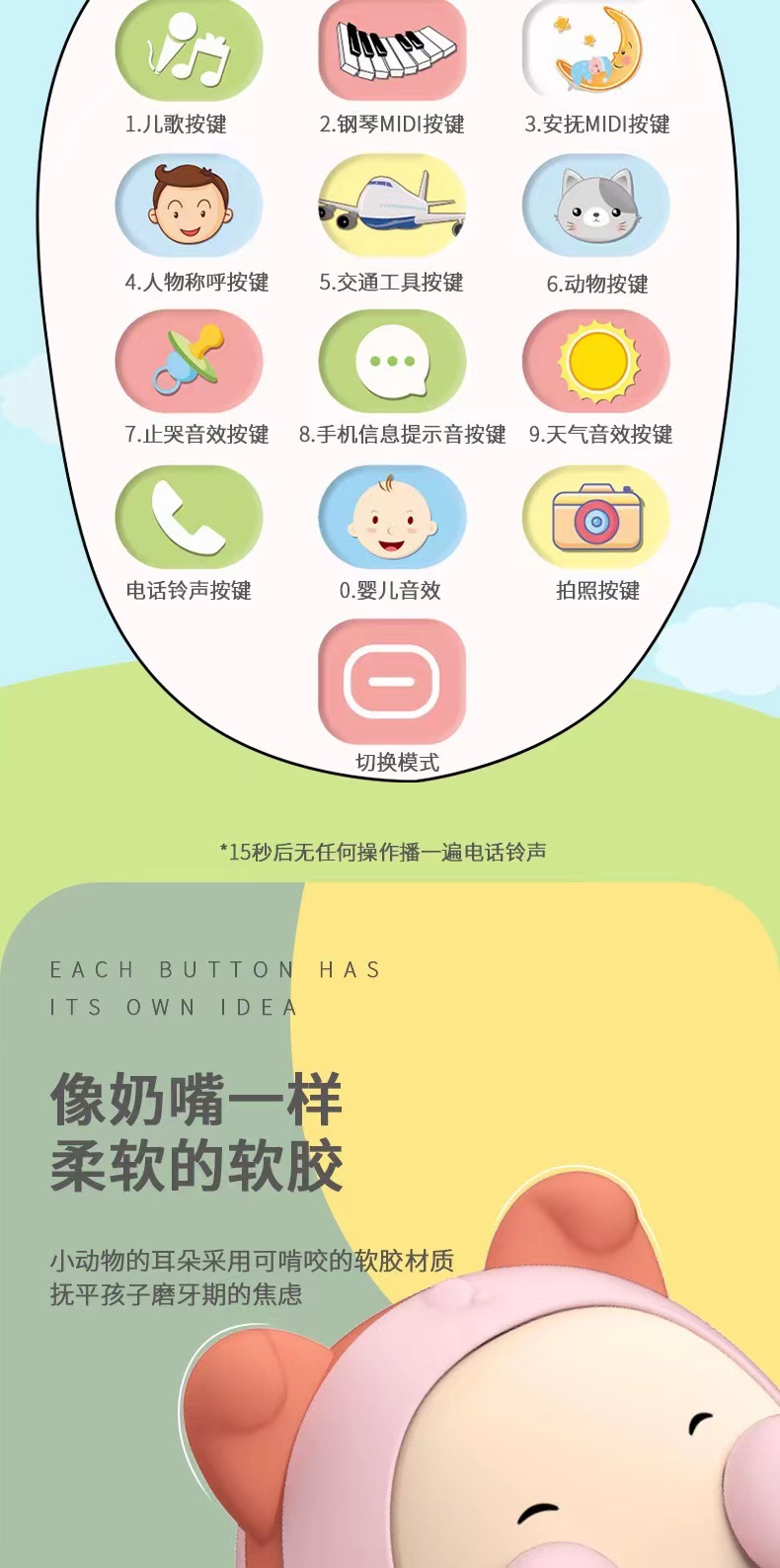 婴儿早教儿童卡通变脸小猪仿真手机可咬音乐故事电话机益智玩具