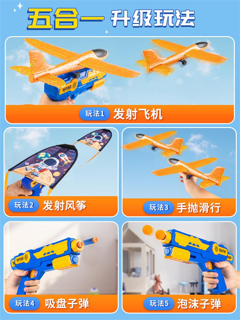 儿童弹射泡沫飞机发射器男孩女孩飞机枪玩具公园地摊