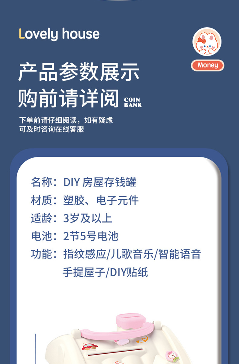 儿童创意小房子存钱罐玩具可存可取可爱卡通兔子储蓄罐生日礼物