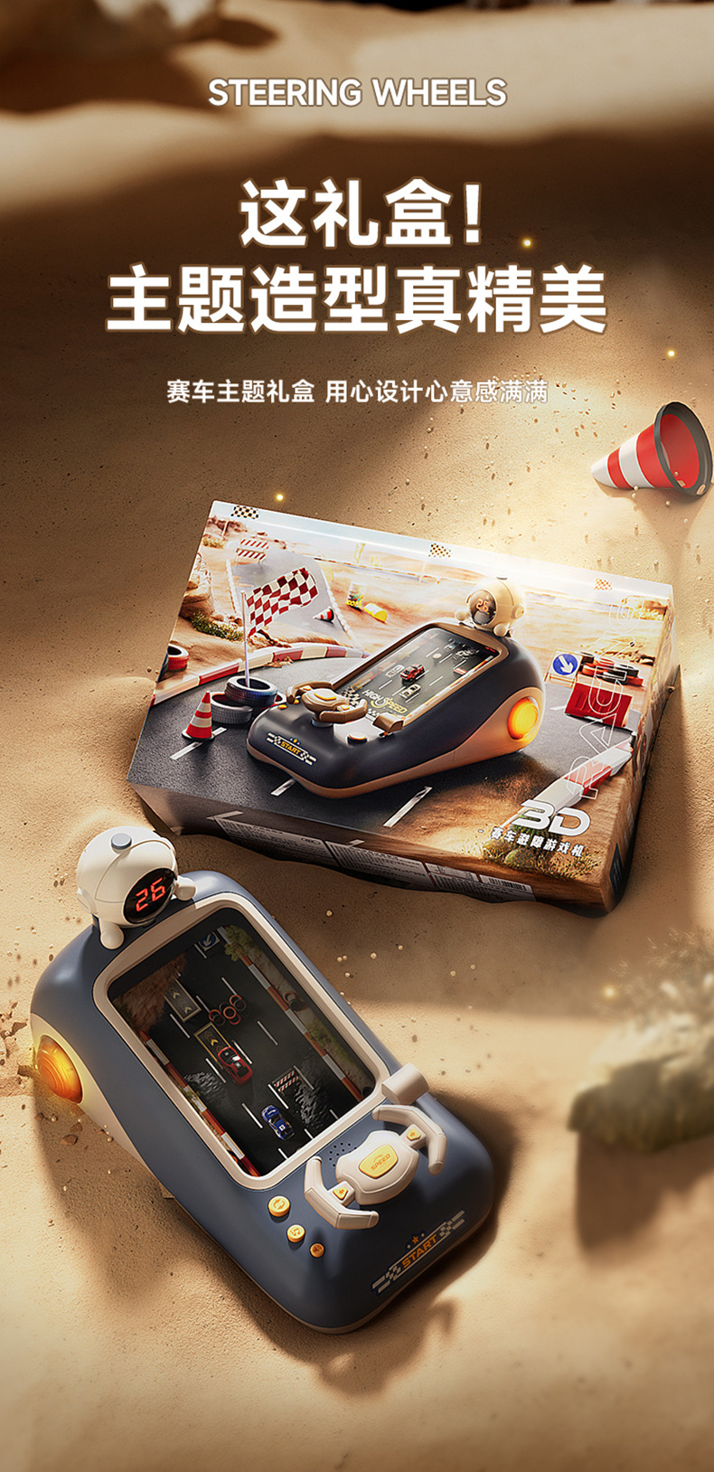 计时版儿童赛车闯关大冒险方向盘玩具可前后换挡趣味避障游戏机