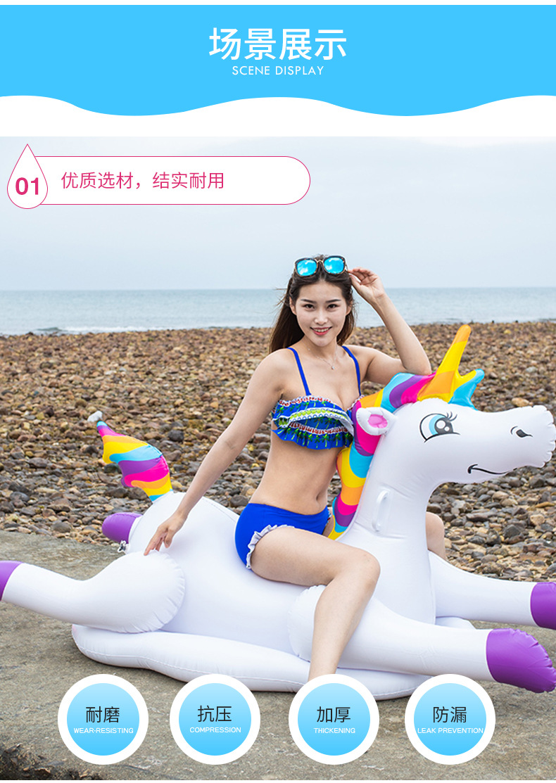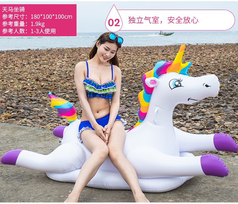 独角兽坐骑 PVC充气 彩马浮排浮床成人儿童充气水上游泳坐骑