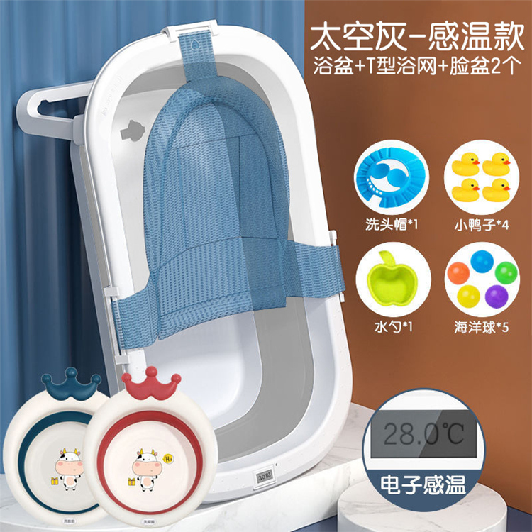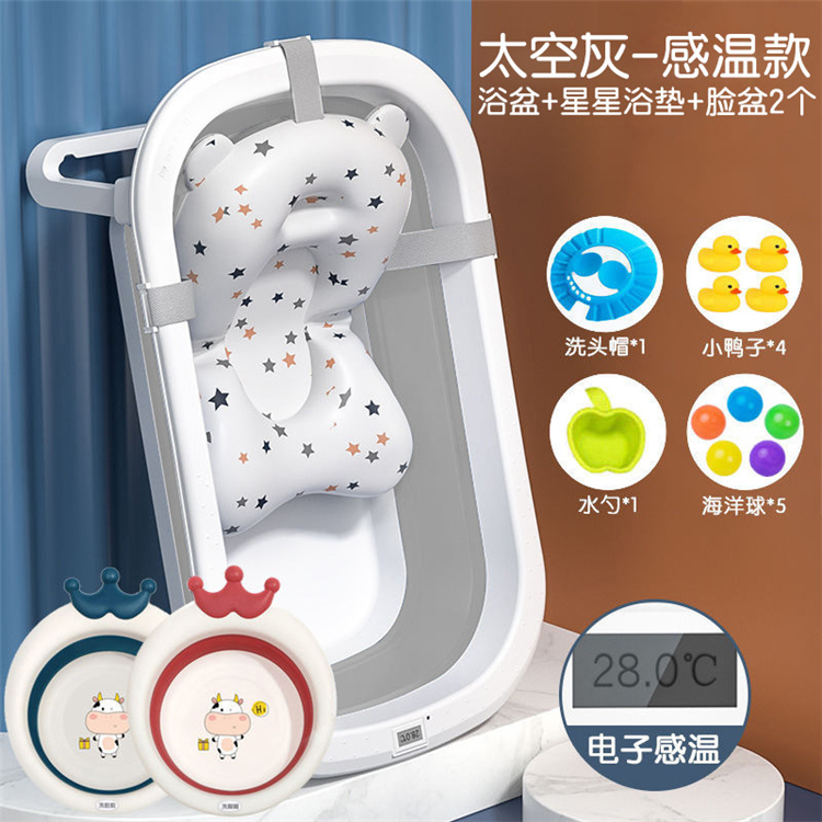 可折叠感温宝宝浴盆数显泡澡桶大号洗澡桶新生儿童用品婴儿洗澡盆