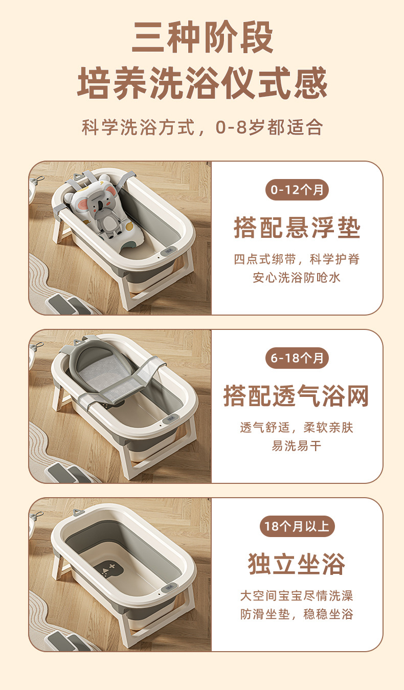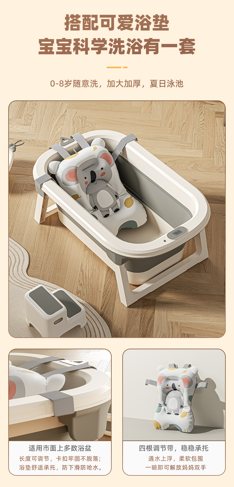 加高婴儿洗澡浴盆宝宝浴桶大号折叠坐躺小孩家用新生儿用品洗澡桶