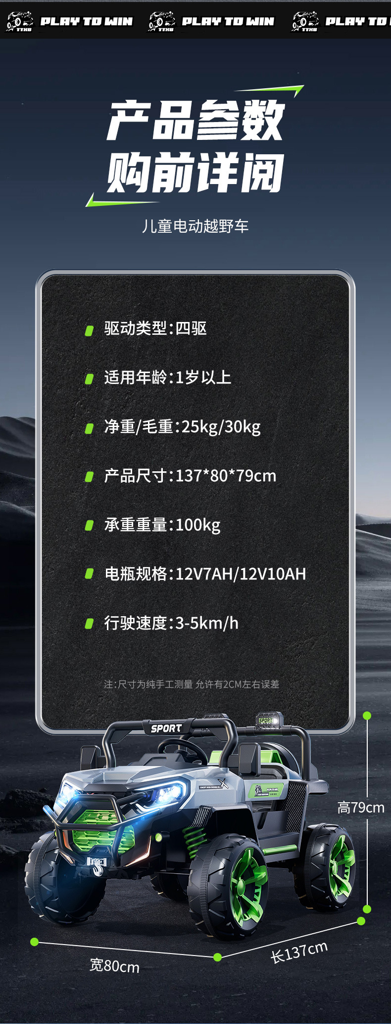 24V儿童电动车越野汽车可以坐宝宝四驱童车带遥控rideoncar发泡轮