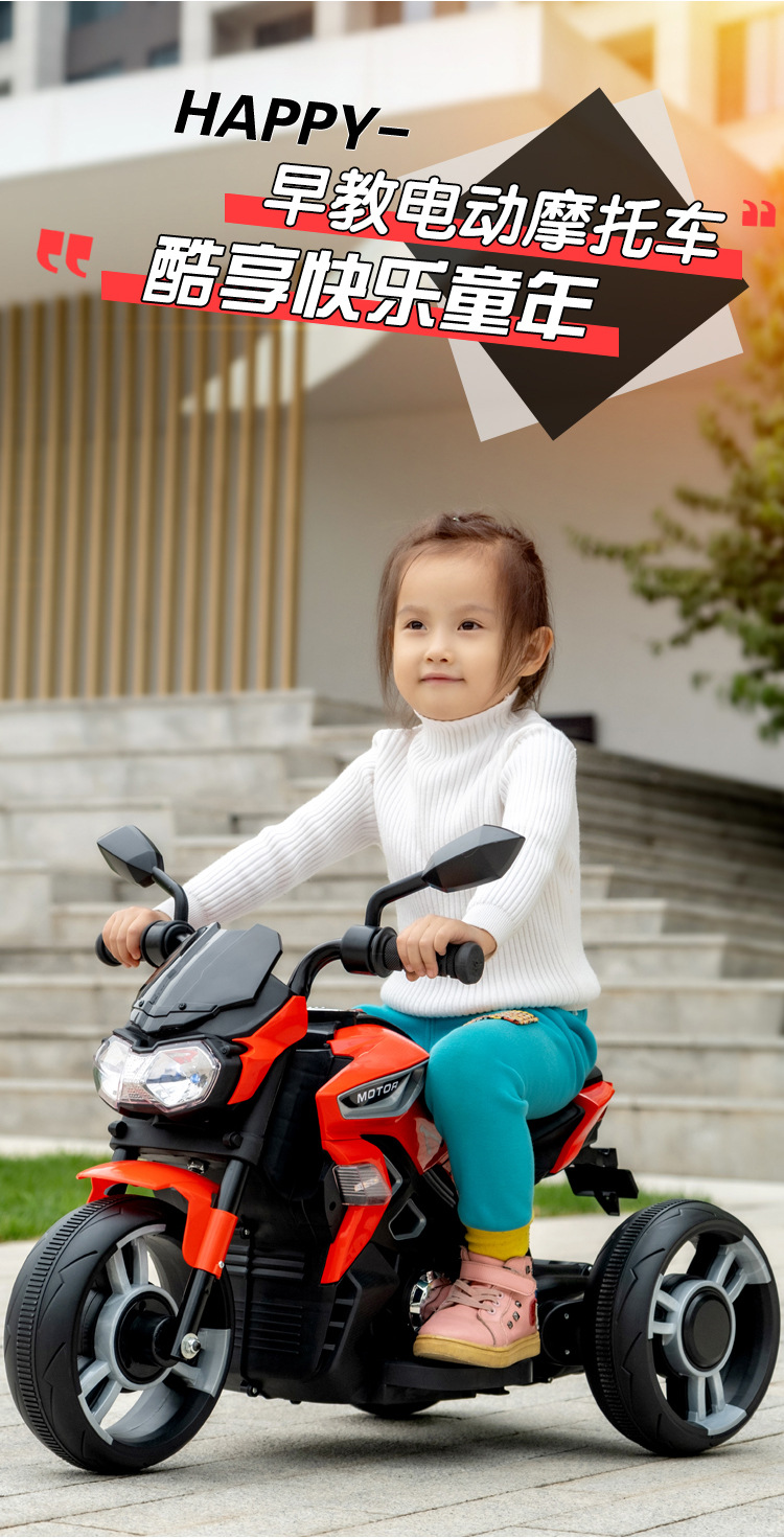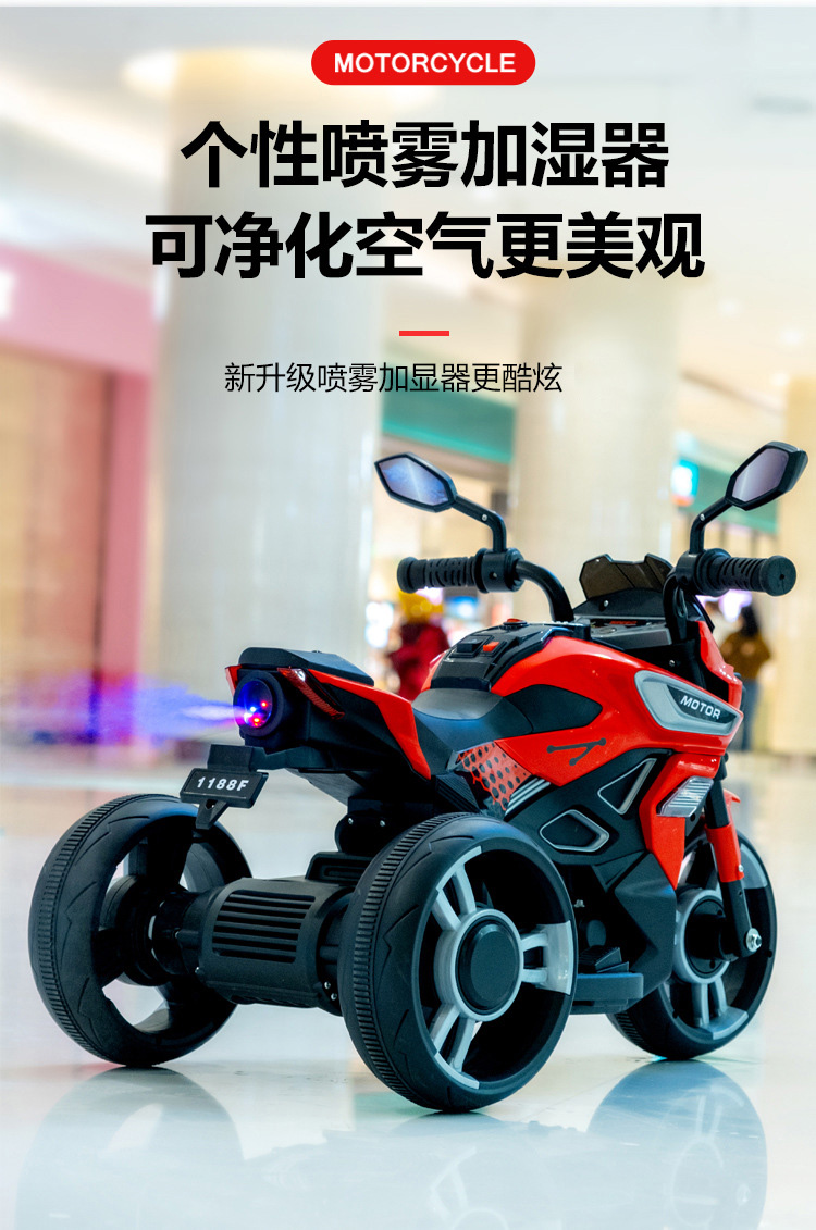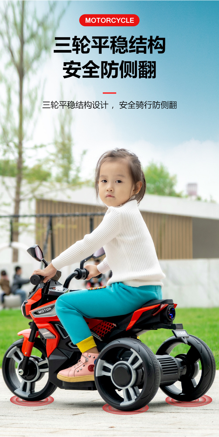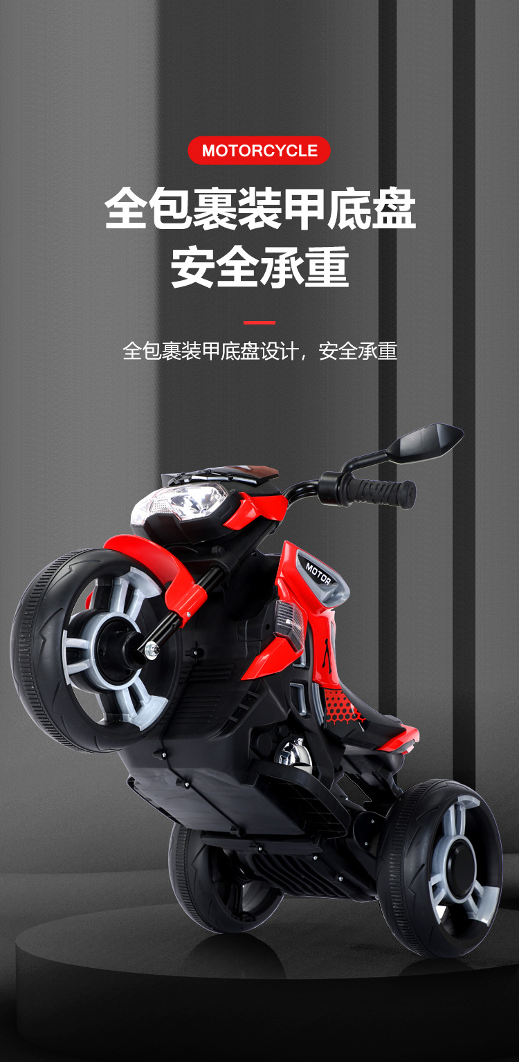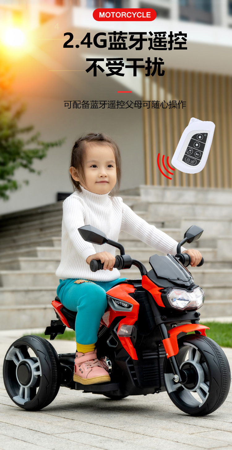 儿童电动摩托车三轮车男女孩宝宝电瓶车小孩可坐人充电遥控玩具车