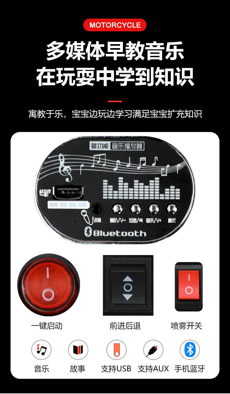 儿童电动摩托车可坐男女小孩双驱遥控三轮车充电自驾电瓶玩具车
