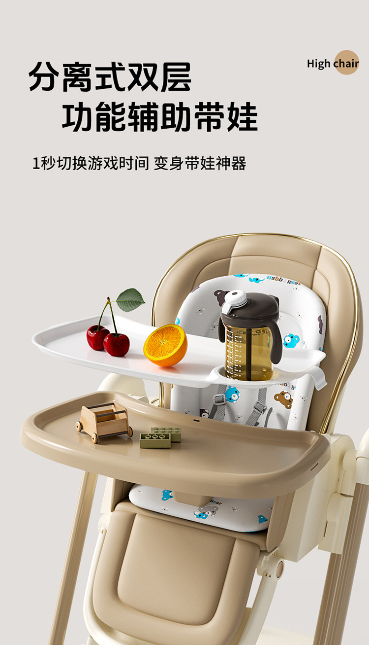宝宝餐椅多用途皮质座套宝宝餐桌婴幼儿大餐盘吃饭椅摇椅二合一