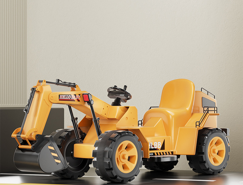 儿童电动挖掘机玩具车可坐可骑大号音乐男孩挖土机学步滑行工程车