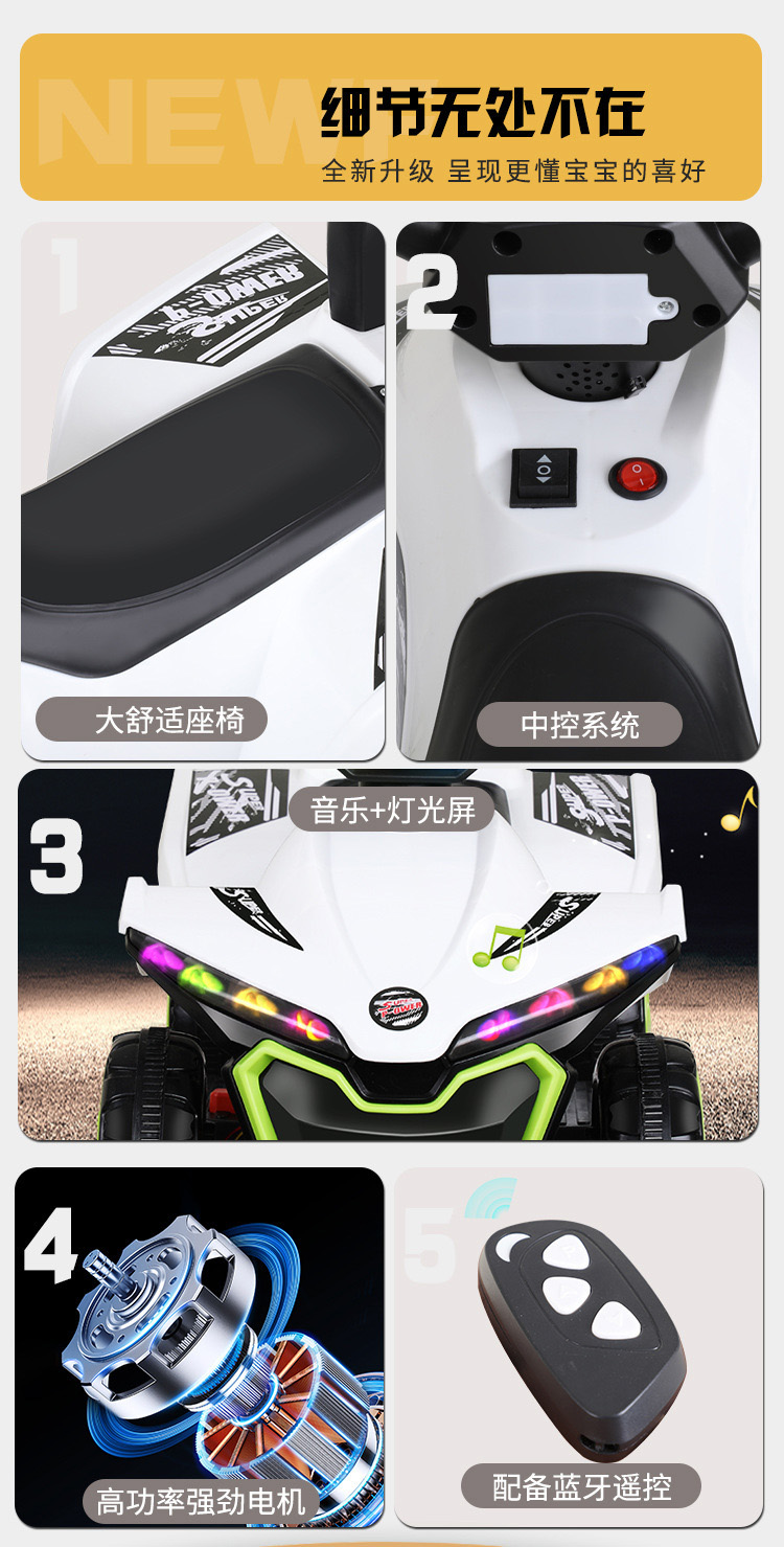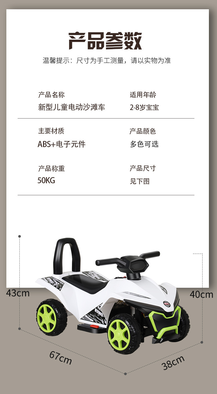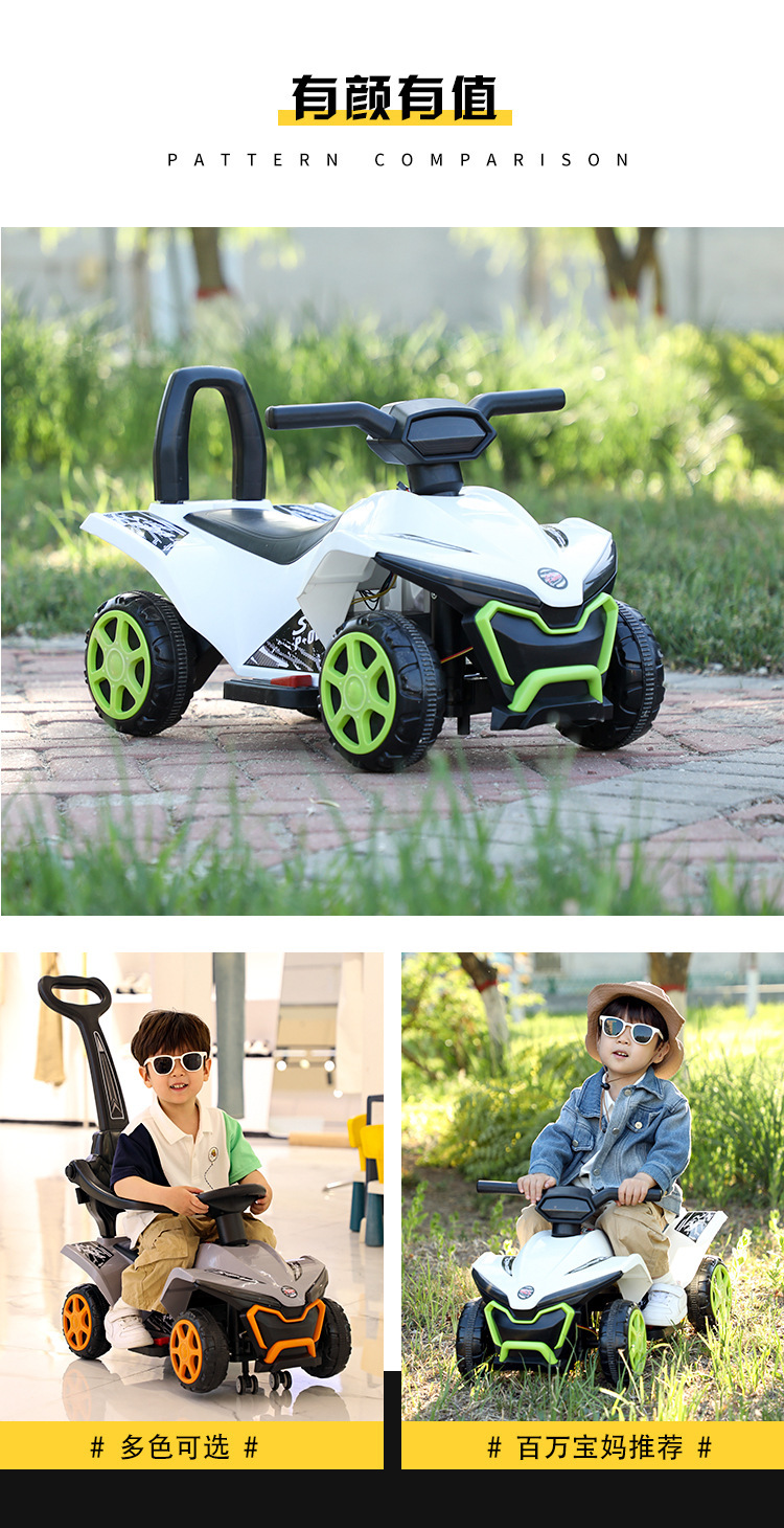 儿童电动车四轮沙滩车可坐人小孩自驾充电款童车灯光音乐摩托车