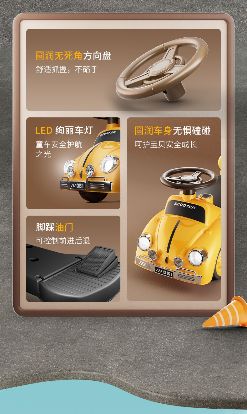 机灵宠物车儿童车扭扭车宝宝滑行车四轮学步车带音乐四轮滑行车