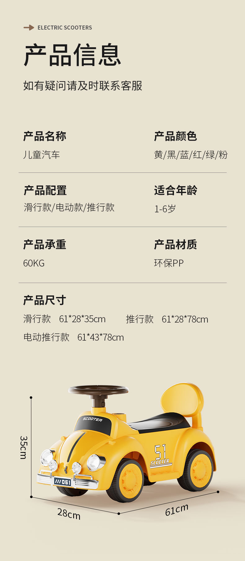 1一3岁儿童汽车滑行车无脚踏婴幼儿溜溜车宝宝滑步车男女孩平衡车