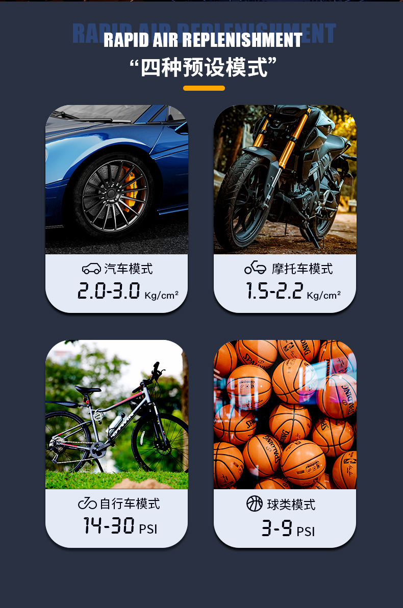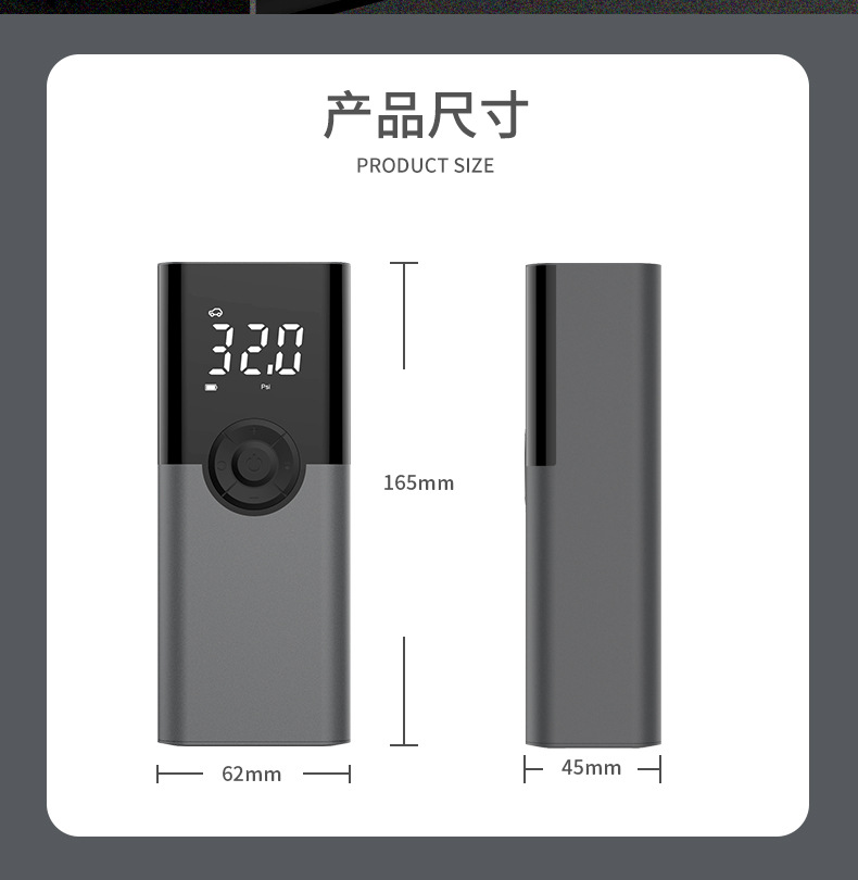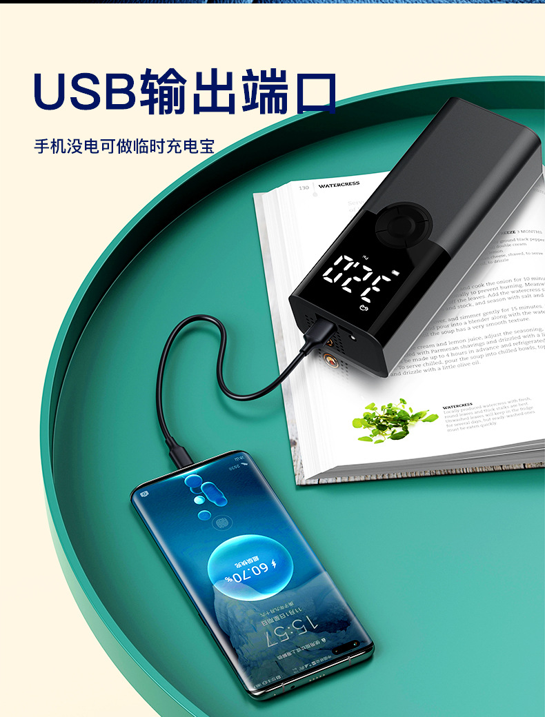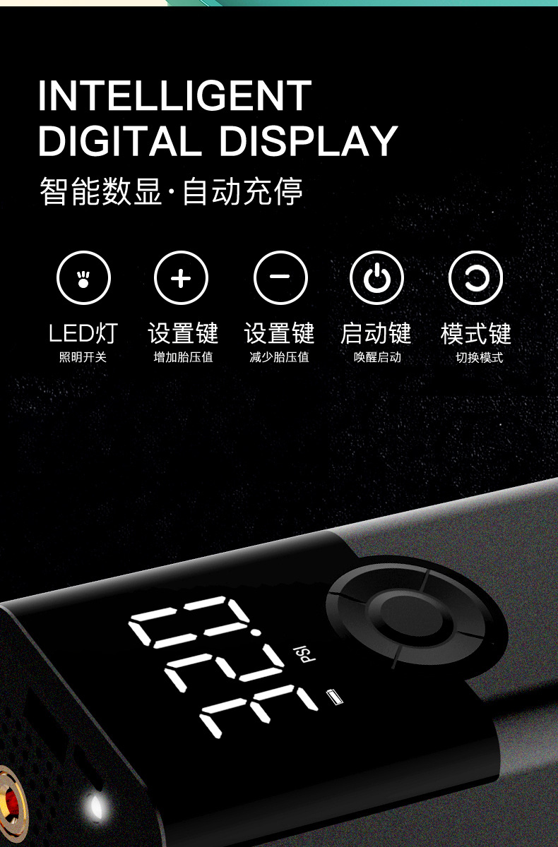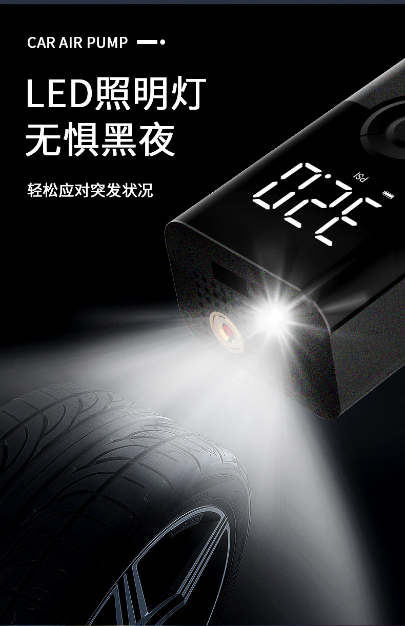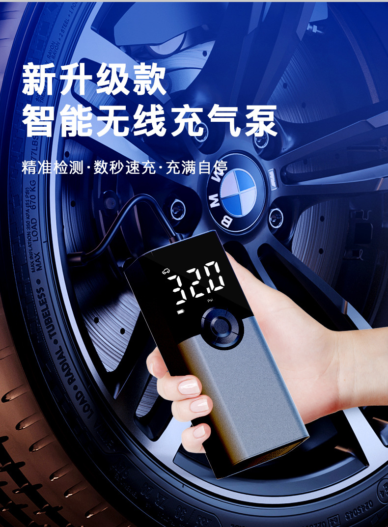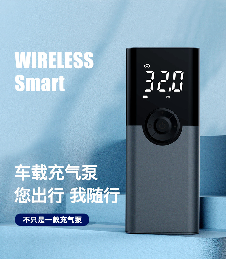 便携式迷你自行电动轮胎打气筒气泵手持无线充电数显车载充气泵