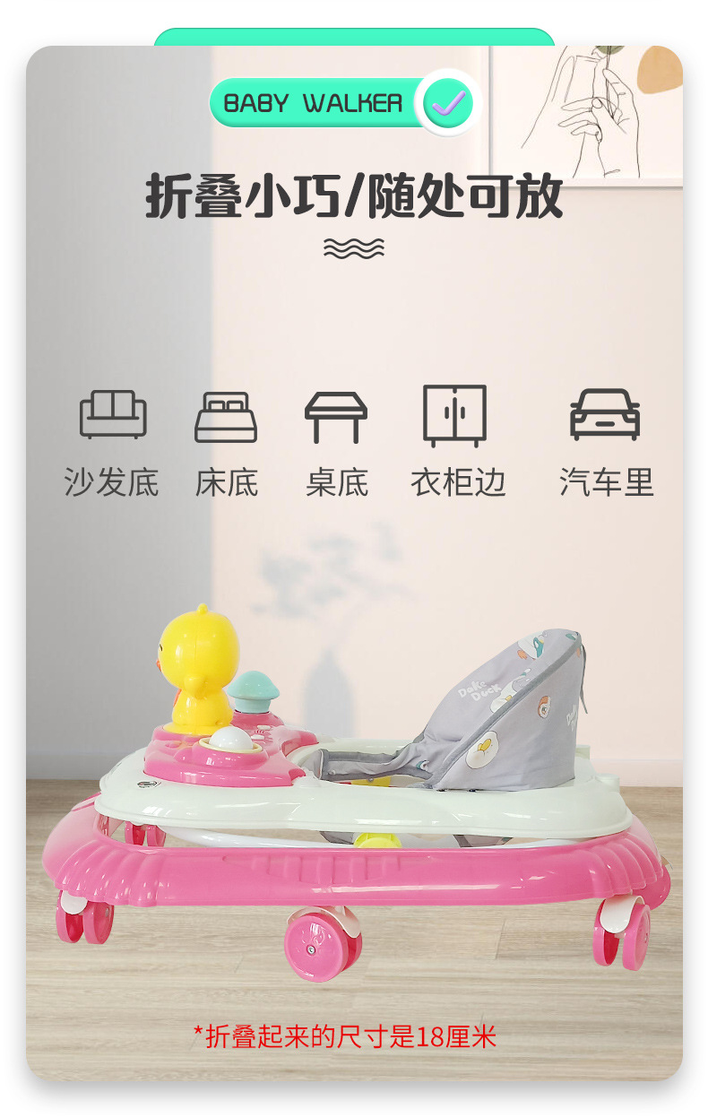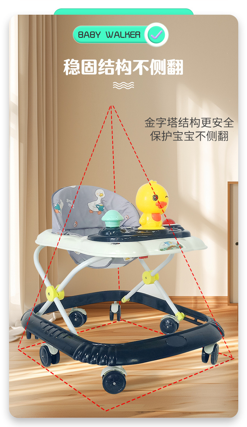 婴儿学步车多种功能防侧翻防o型腿助步车带音乐可折叠学行车