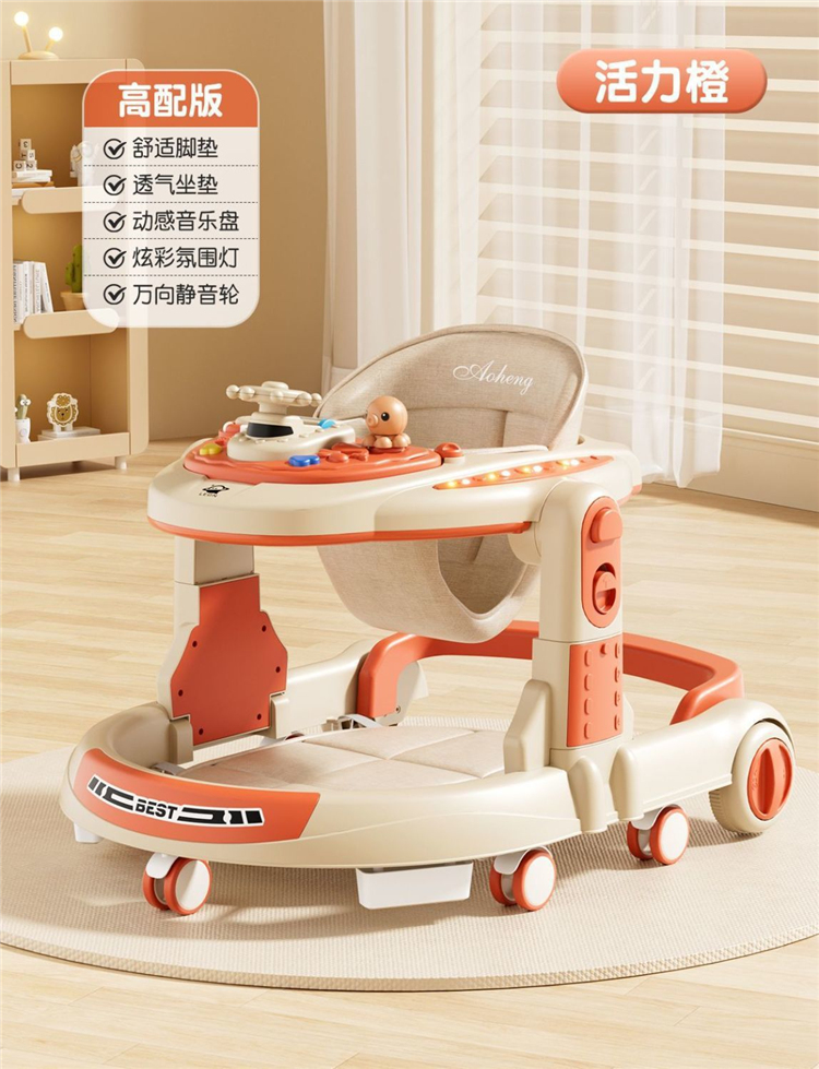婴幼儿学步车音乐多种功能防侧翻轻便可折叠6-18月宝宝手推车o型腿