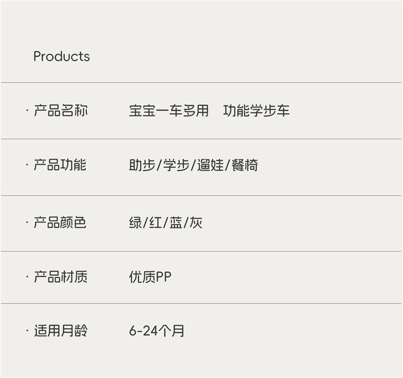 活力红,映素灰,摩登蓝,森屿绿。推把车蓬,脚垫