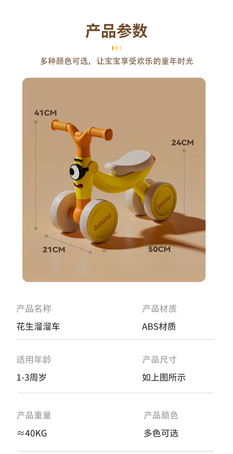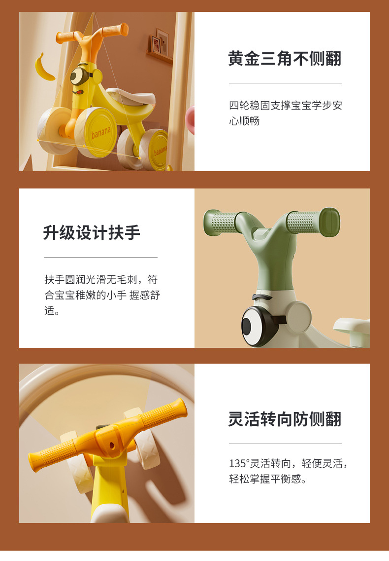 儿童香蕉滑行车1-3岁婴儿宝宝四轮学步车防侧翻小孩溜溜车平衡车