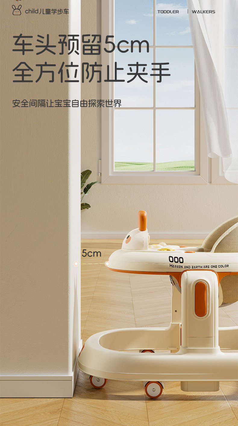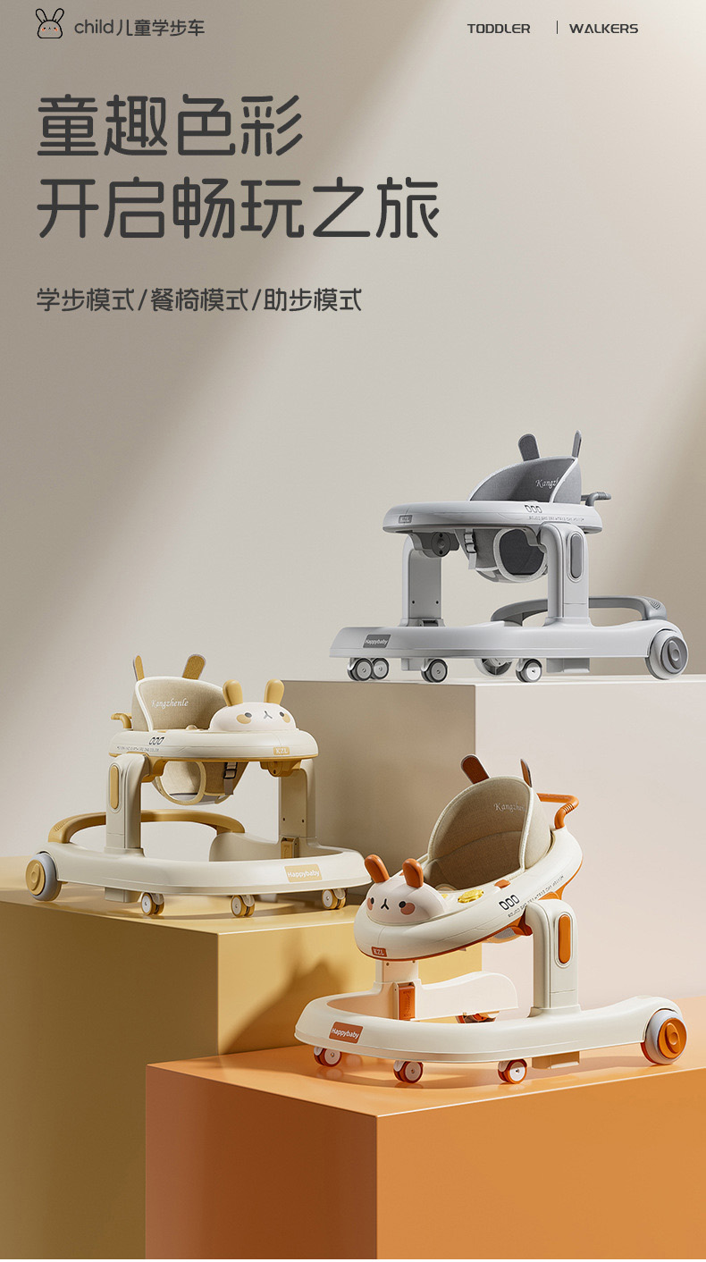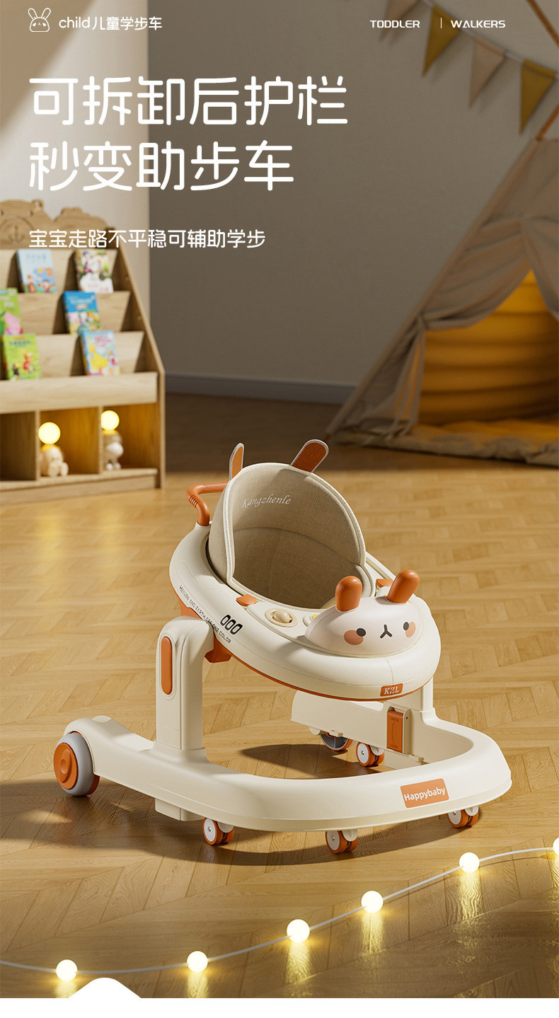 婴儿学步车防型腿防侧翻6-18个月宝宝音乐可坐可推助步学行车