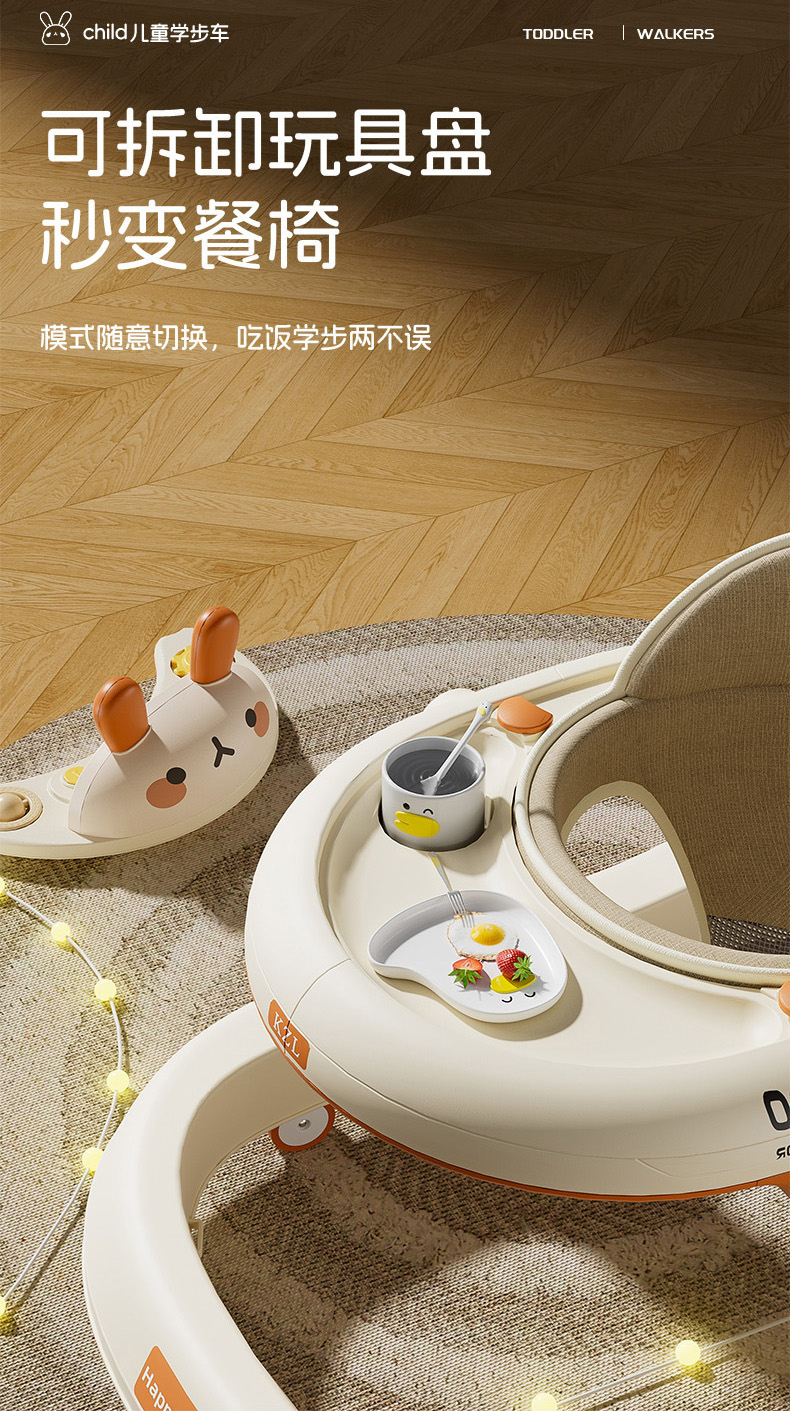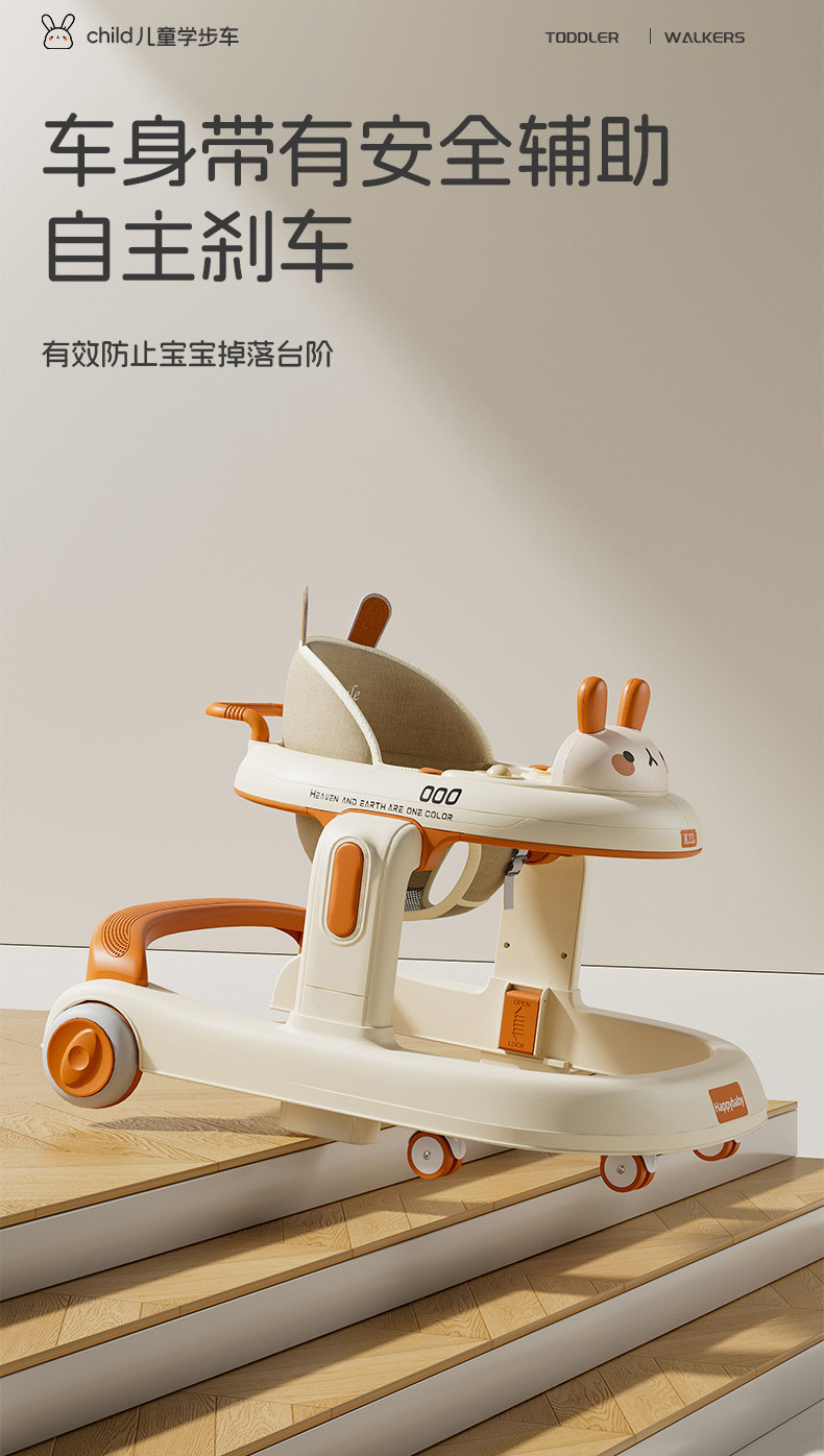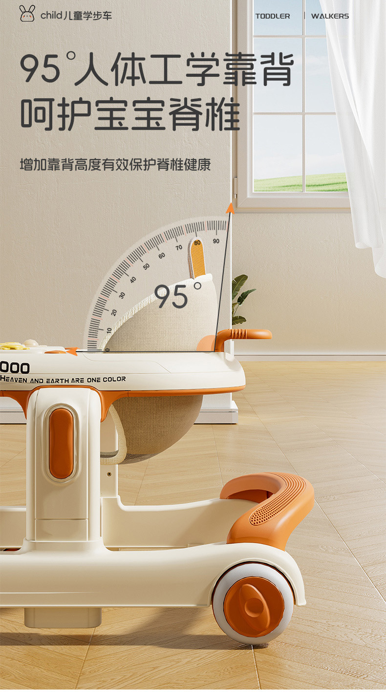 婴儿学步车防型腿防侧翻6-18个月宝宝音乐可坐可推助步学行车