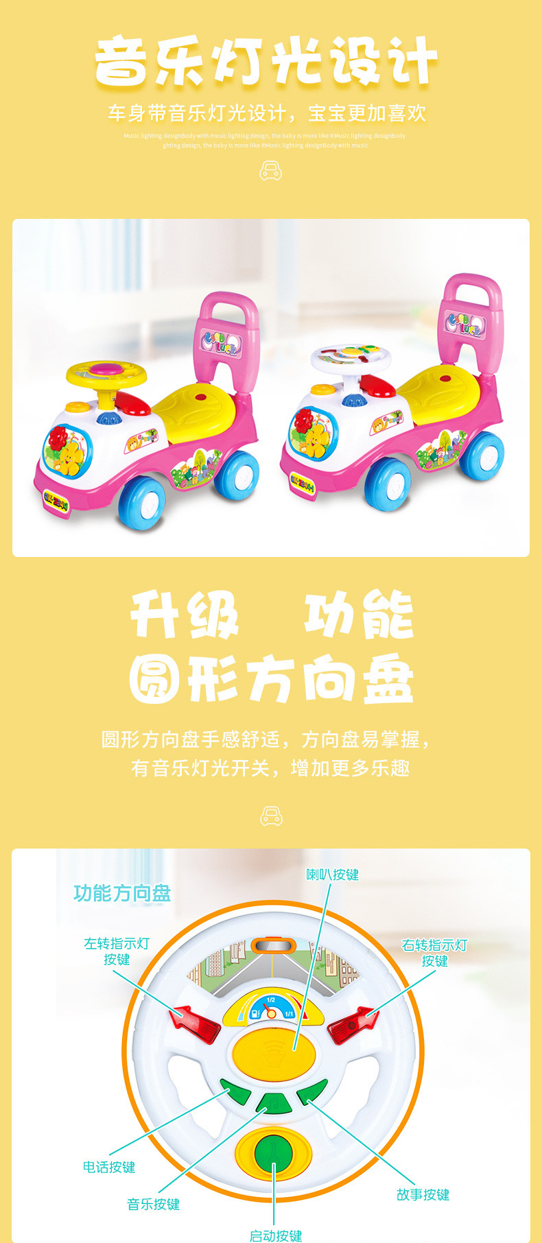 儿童扭扭车1-3岁宝宝滑行车带音乐男女四轮可坐玩具滑行车溜溜车
