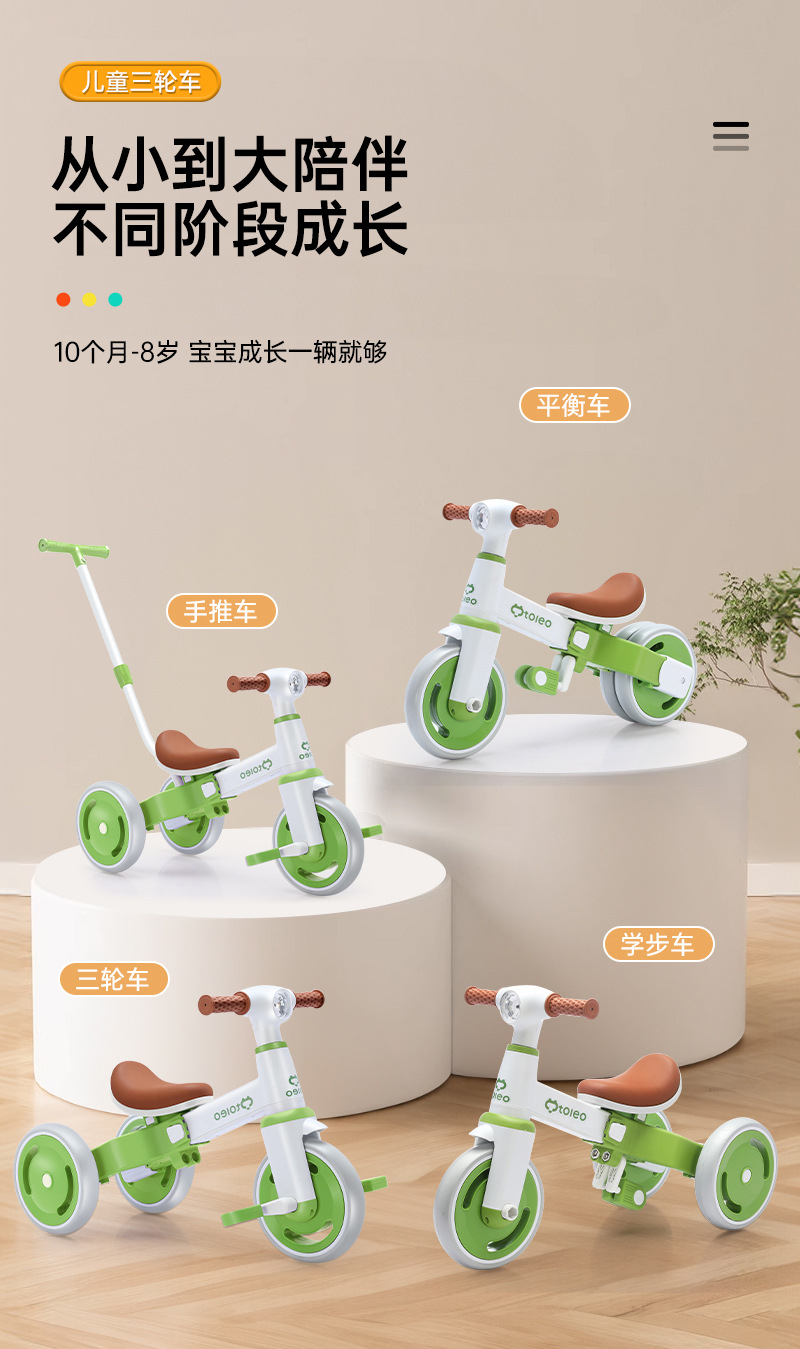 儿童三轮车脚踏车遛娃神器多种功能轻便自行车宝宝小孩平衡车