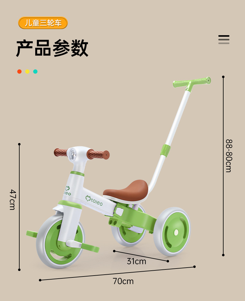 4合1折叠婴儿三轮车儿童自行车带推杆适用于2-4岁和5-7岁3轮婴儿慢跑者 ¥132.00