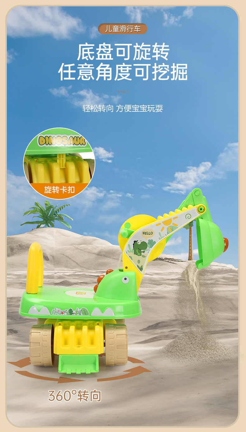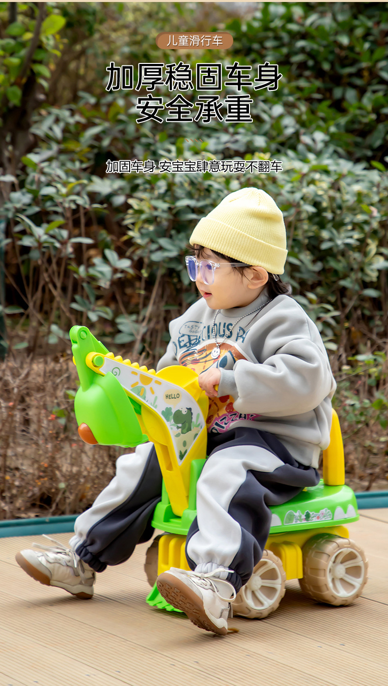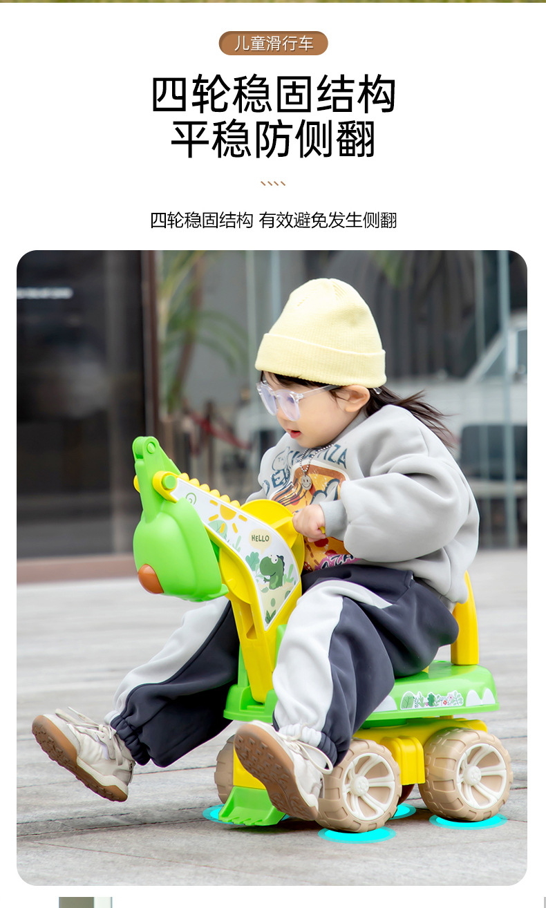 四轮滑行车儿童挖掘机恐龙挖机可360旋转男女宝宝1-3岁工程滑行车