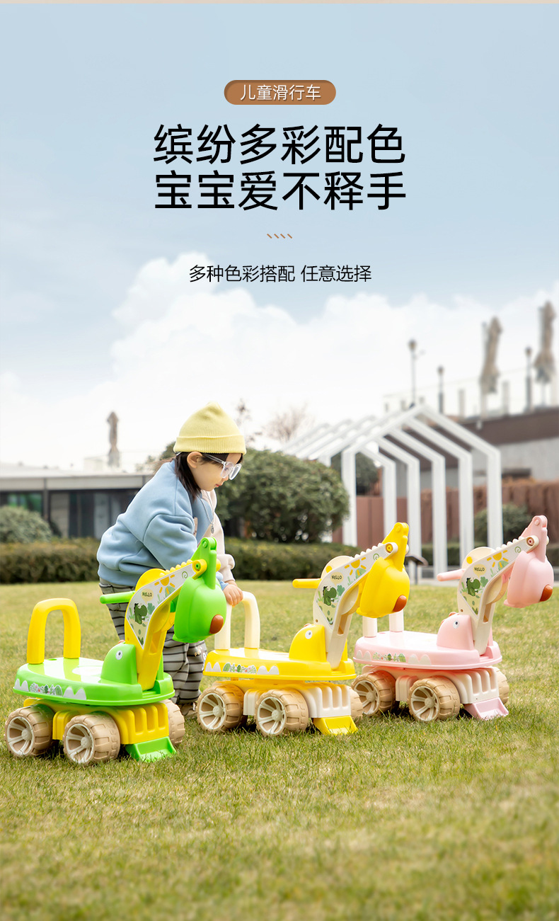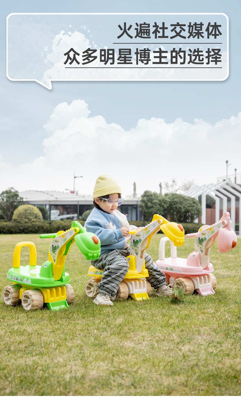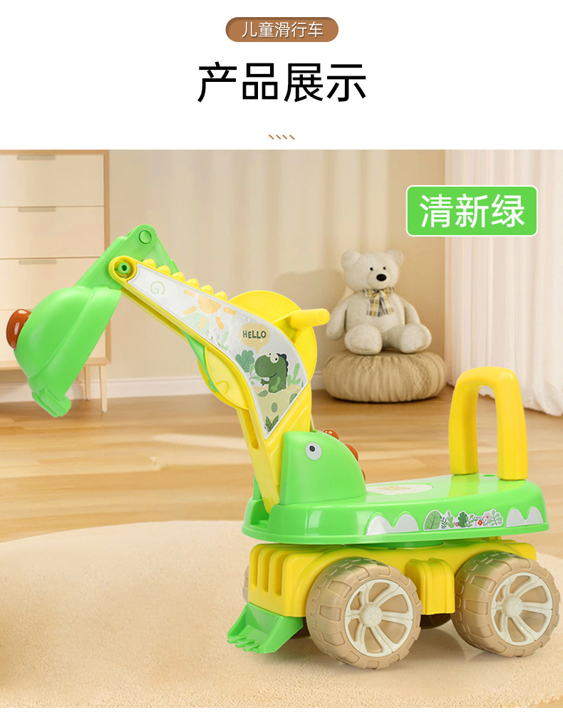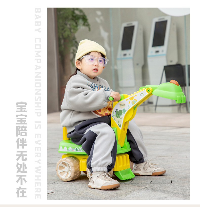 四轮滑行车儿童挖掘机恐龙挖机可360旋转男女宝宝1-3岁工程滑行车