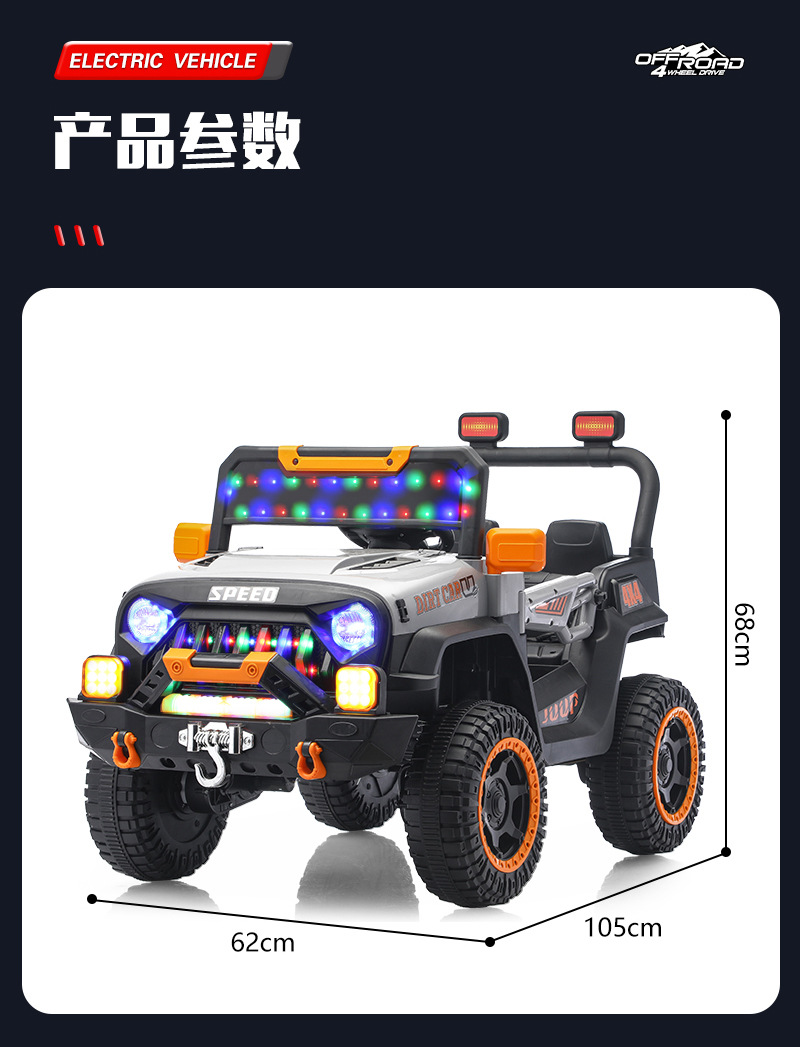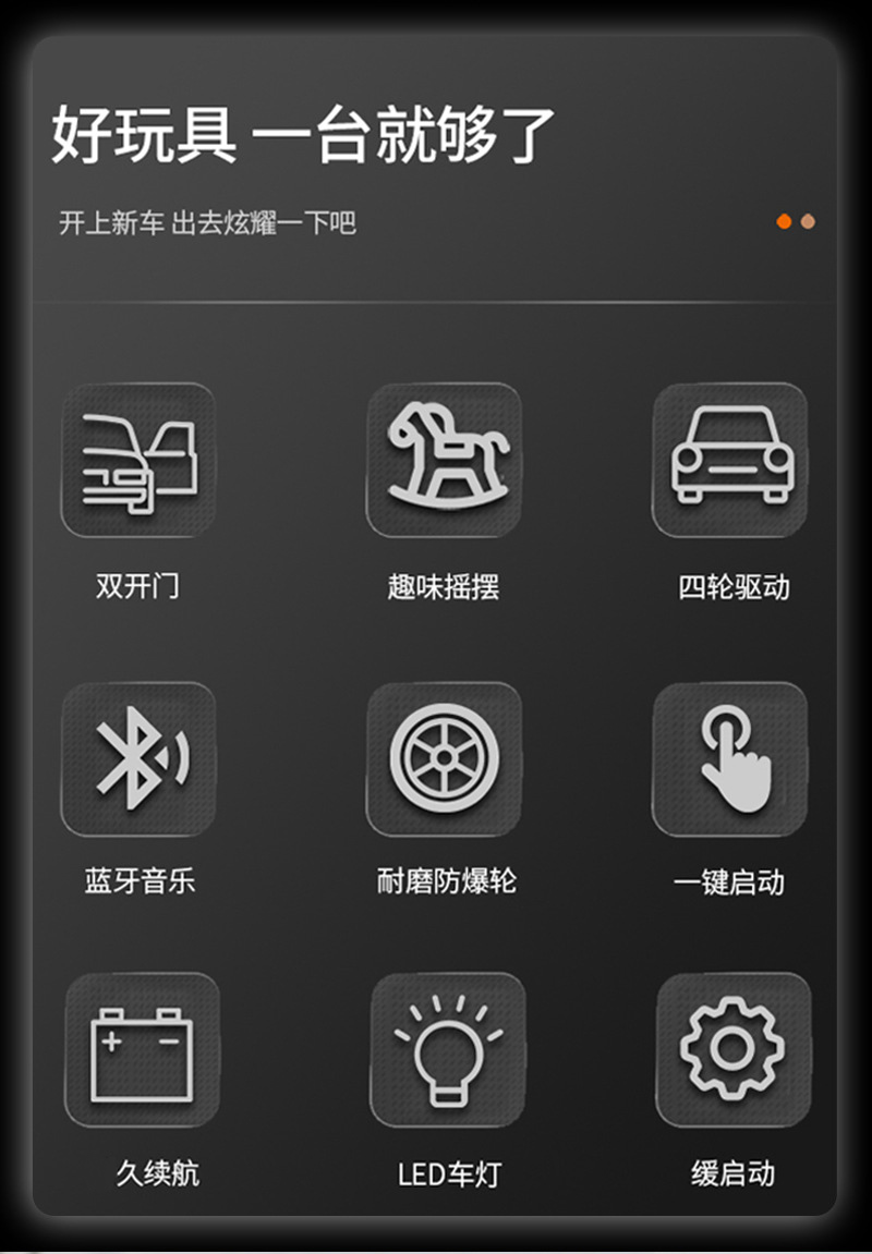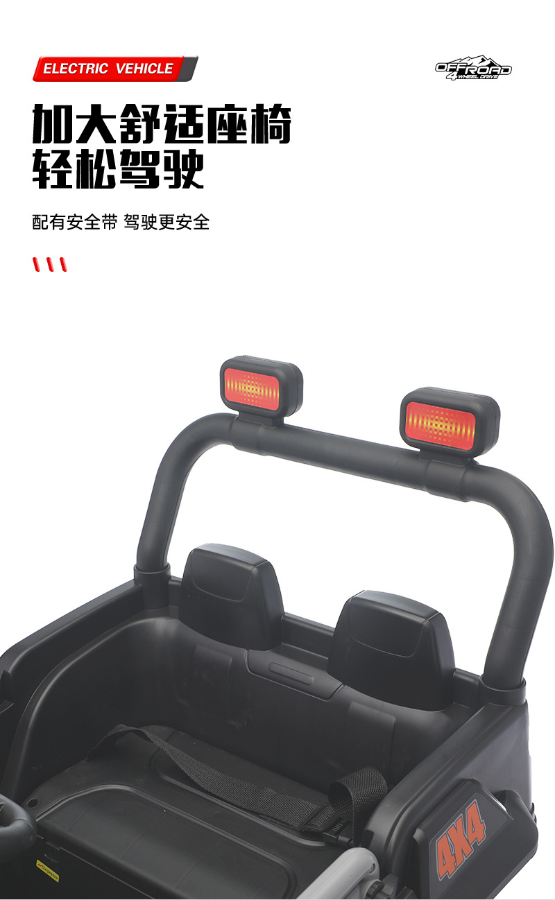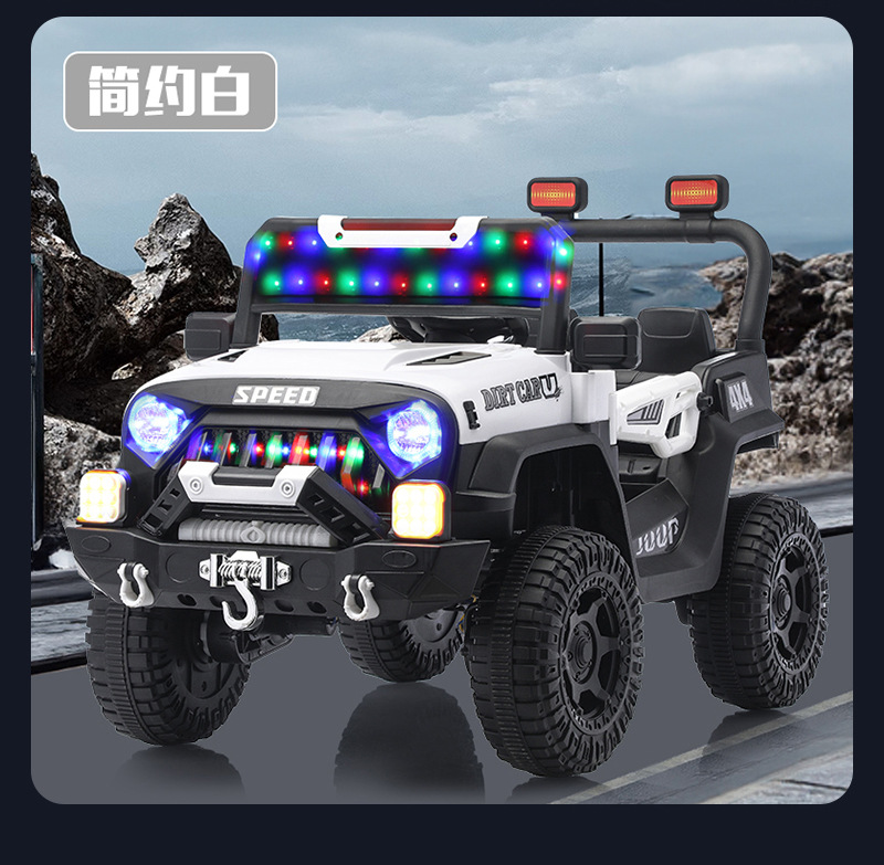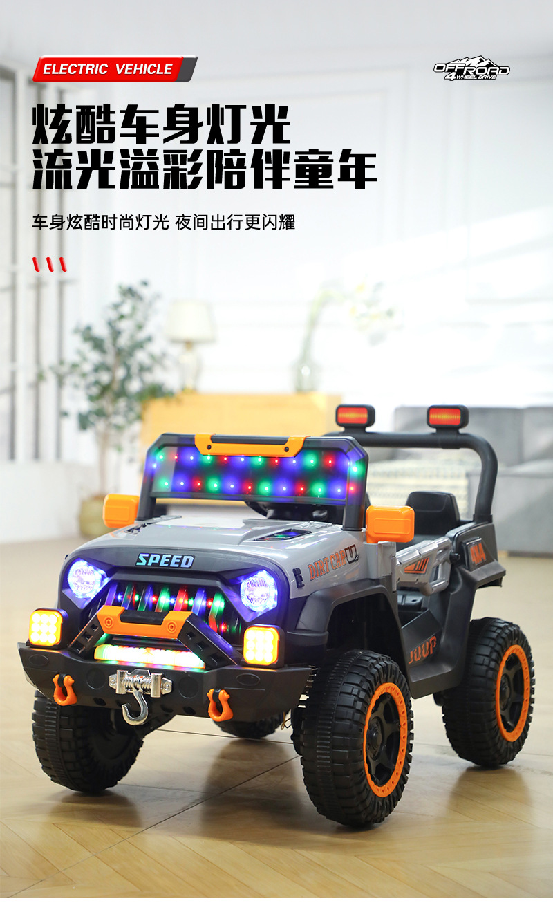标配音乐灯光遥控器,电子摇摆,遥控,前后仿真车灯,蓝牙,早教 英语,音乐,故事,USB,MP3,防滑轮胎,四轮避震