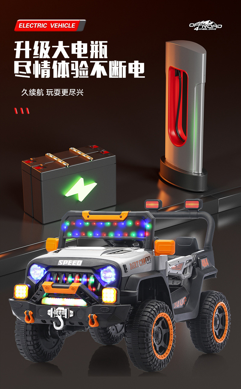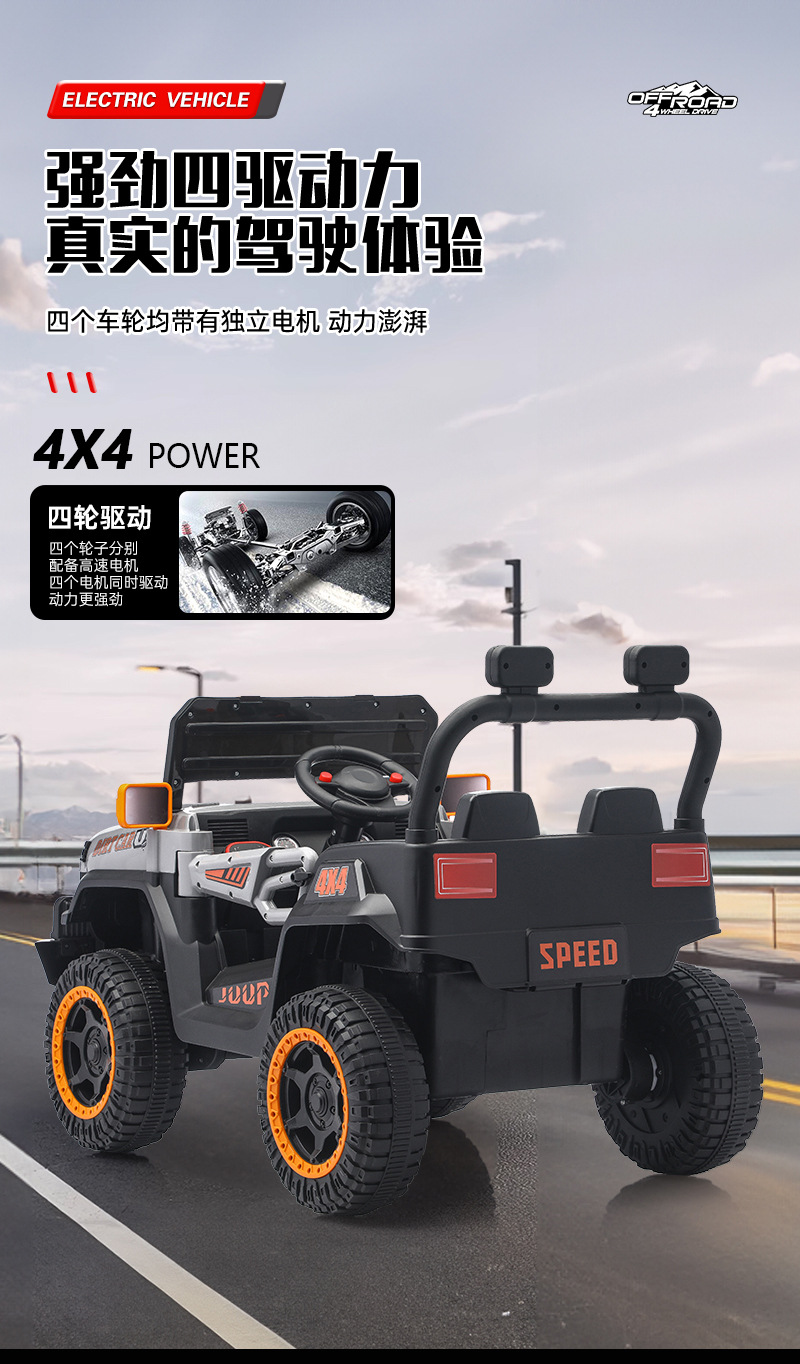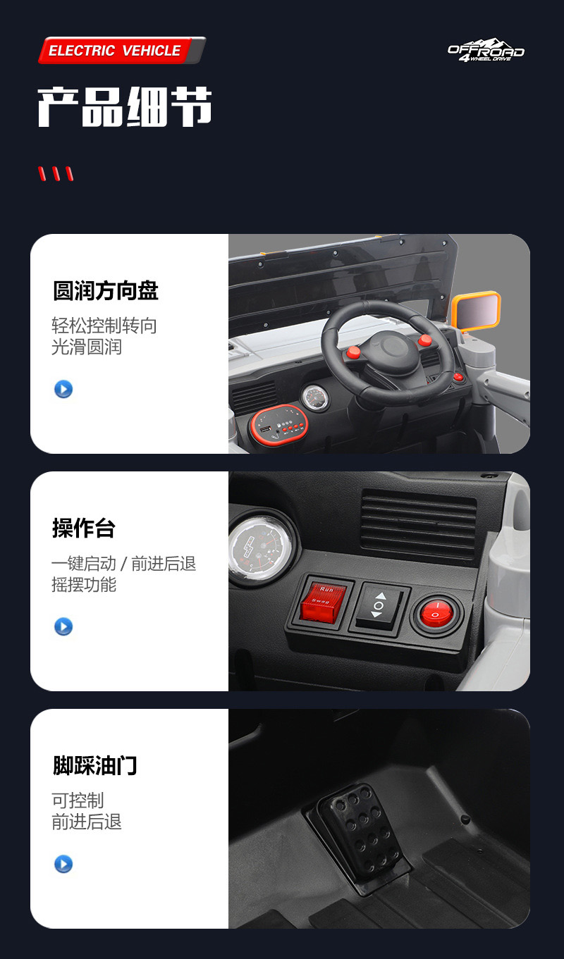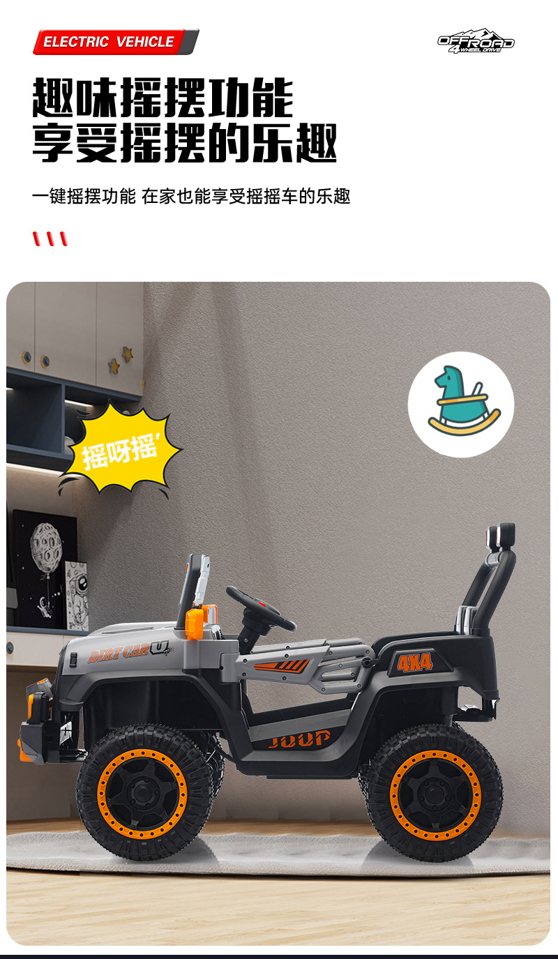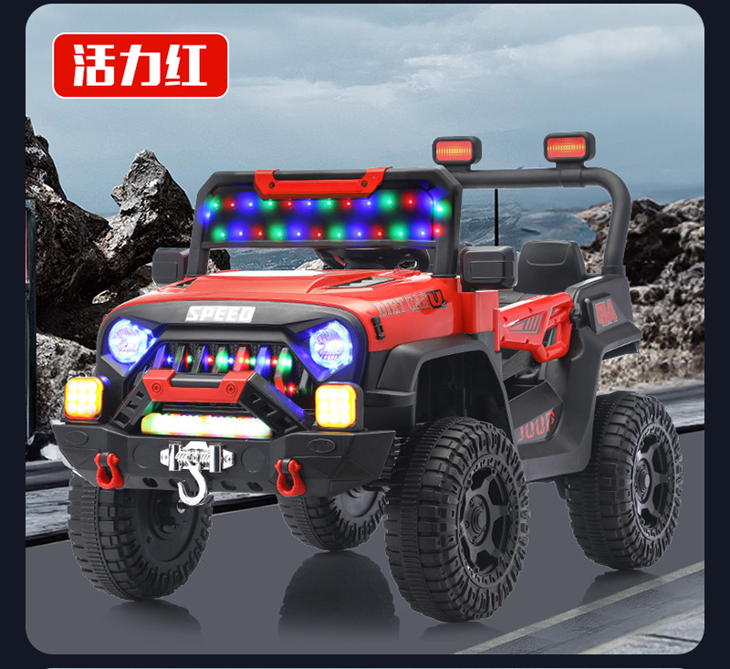 标配音乐灯光遥控器,电子摇摆,遥控,前后仿真车灯,蓝牙,早教 英语,音乐,故事,USB,MP3,防滑轮胎,四轮避震