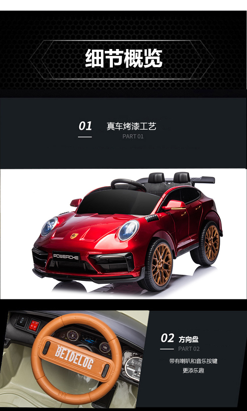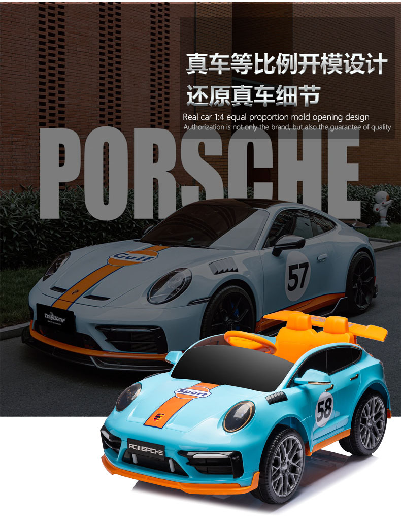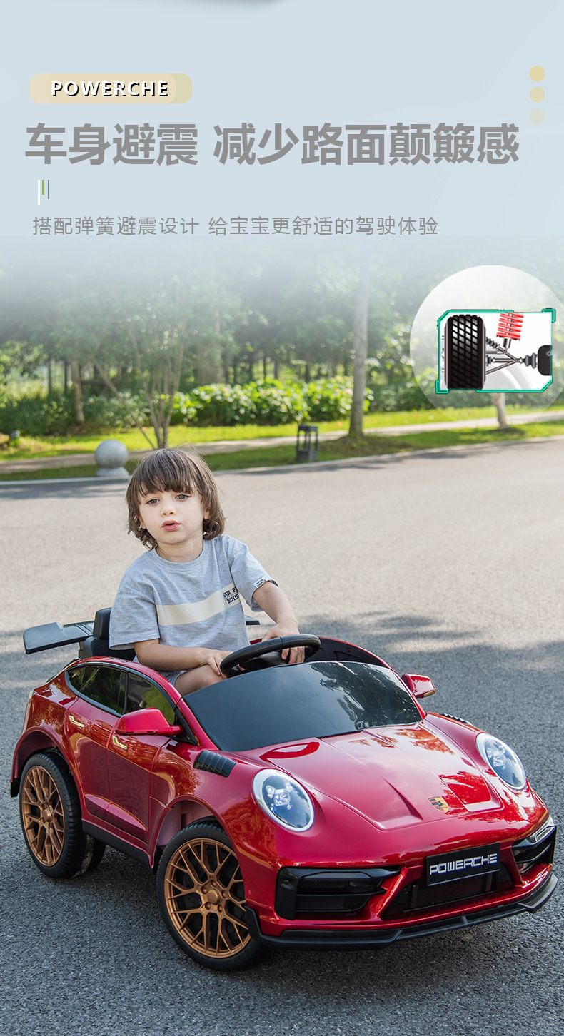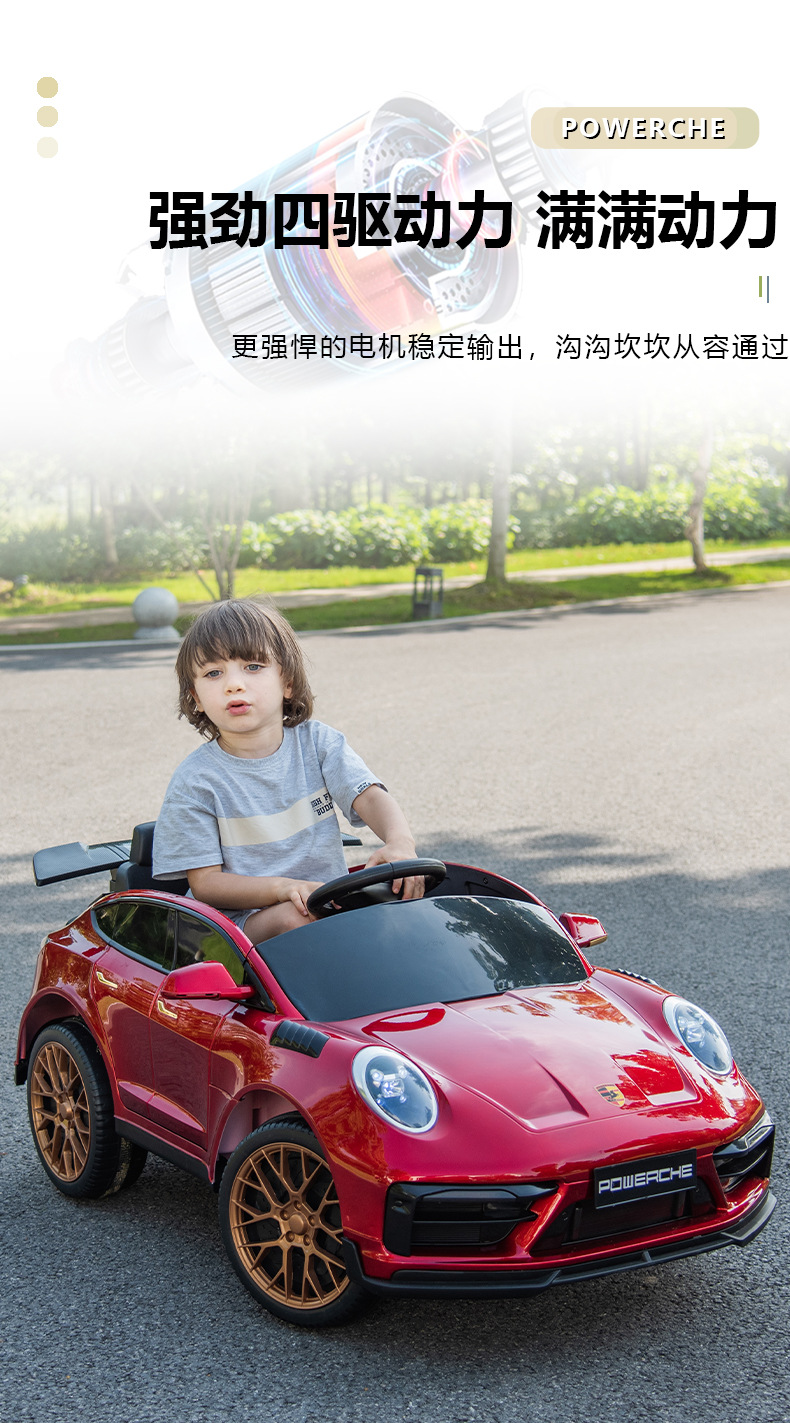 儿童电动四轮警车玩具车保时捷带遥控男女小孩可坐充电童车