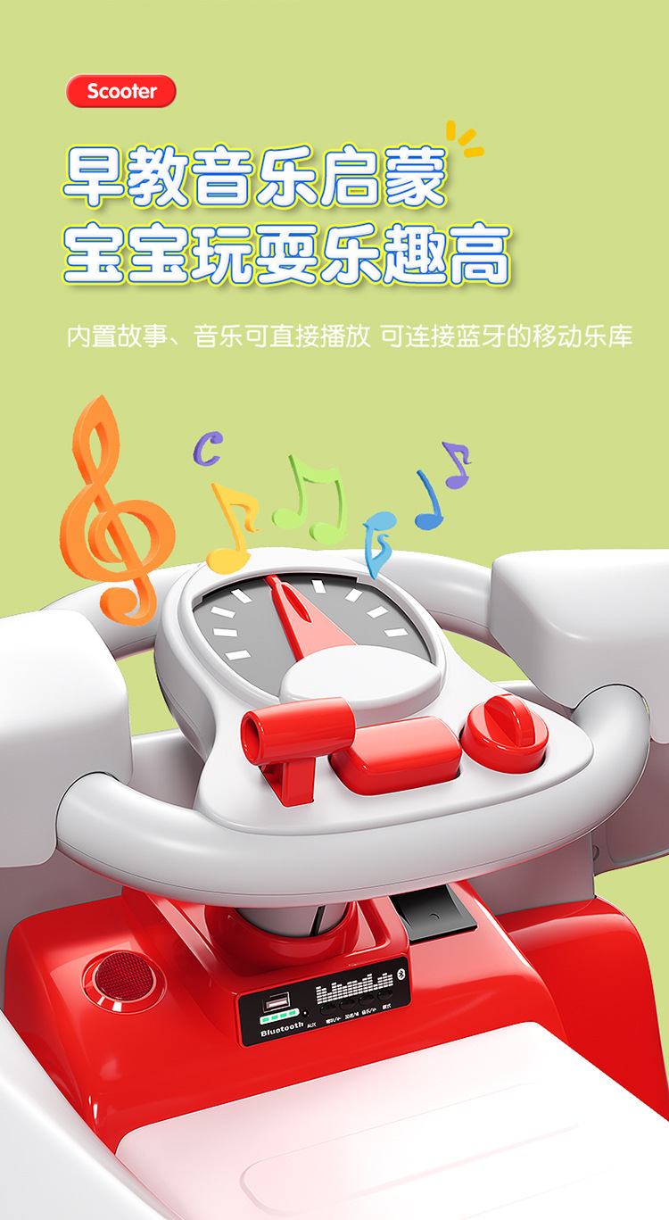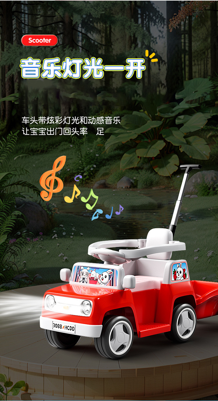 酷炫儿童车 带手柄红色白色 推把电动车 儿童电动推把汽车 ¥435.00