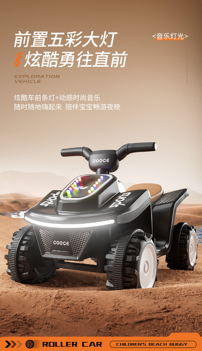 新款儿童电动沙滩车男女孩宝宝1-4岁灯光音乐可坐充电款出口