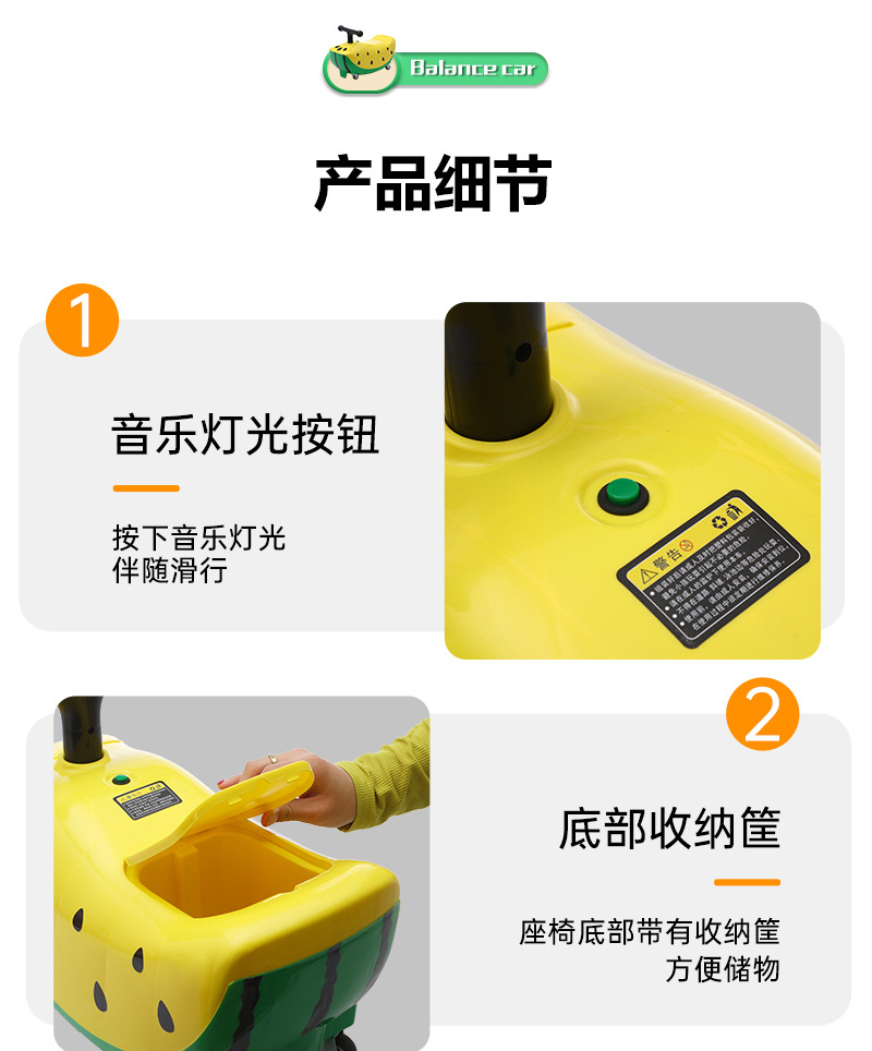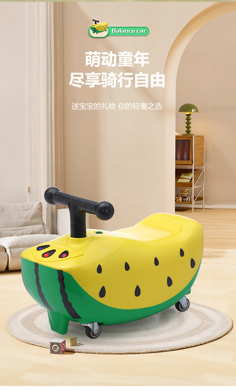 新款西瓜儿童滑行车万向轮音乐灯光花生车防侧翻学步溜溜扭扭车