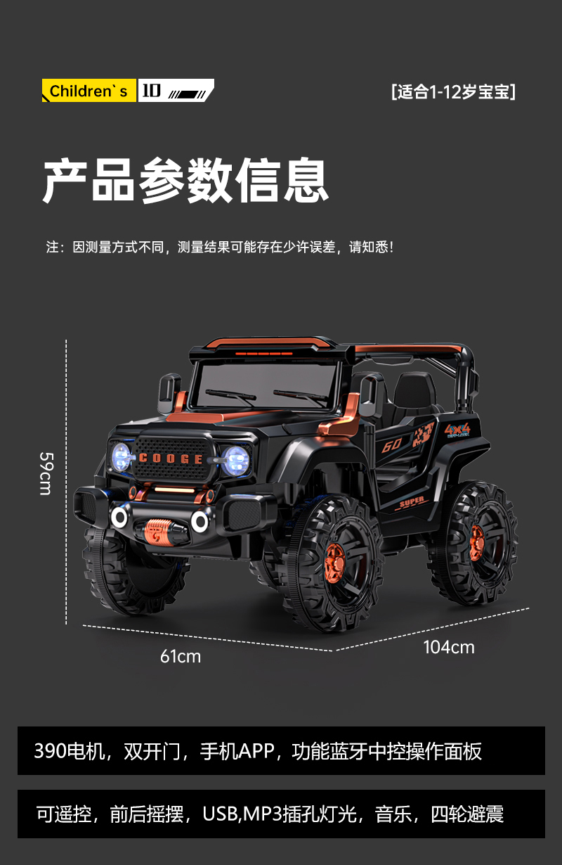 儿童电动车小孩四轮越野车四驱遥控玩具汽车可坐大人宝宝摇摆童车 ¥562.00