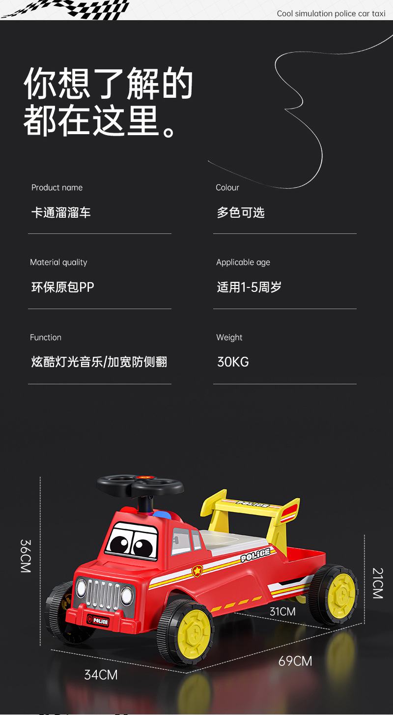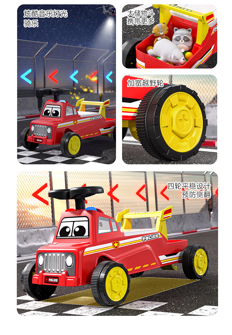 1-3岁儿童滑行车赛车溜溜车玩具车四轮玩具车可坐人带灯光音乐