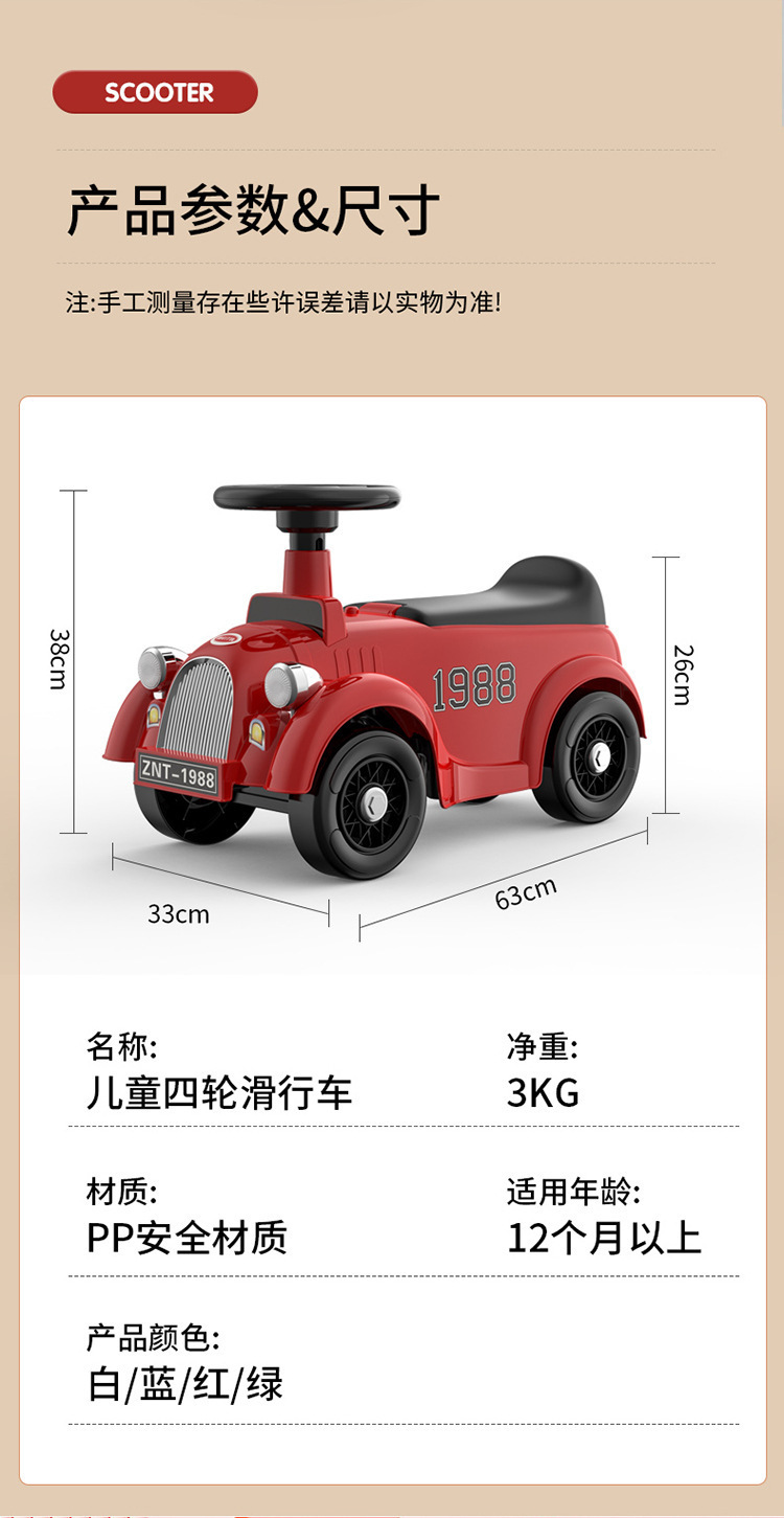 1一3岁儿童汽车滑行车无脚踏婴幼儿溜溜车宝宝滑步车男女孩平衡车