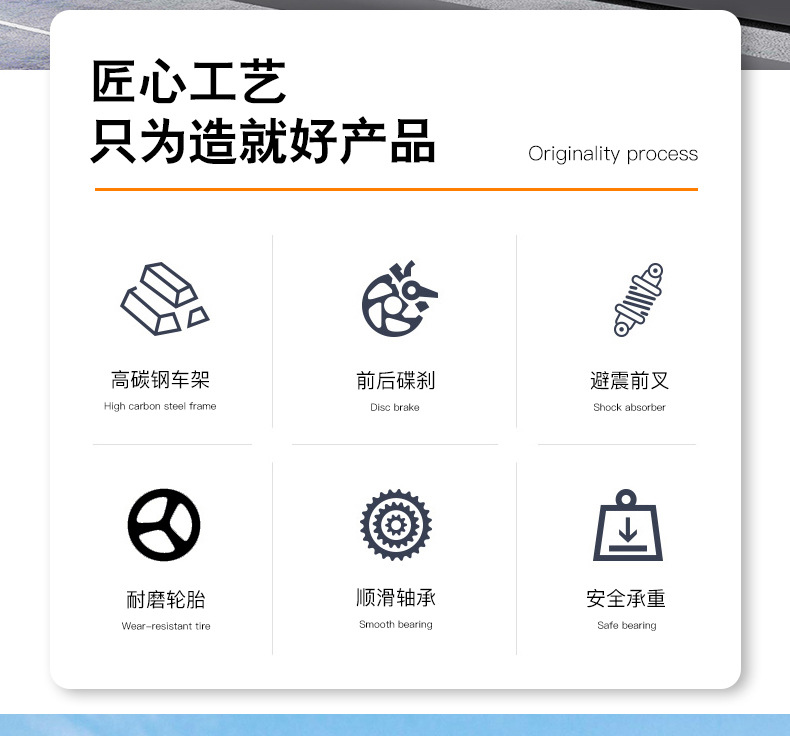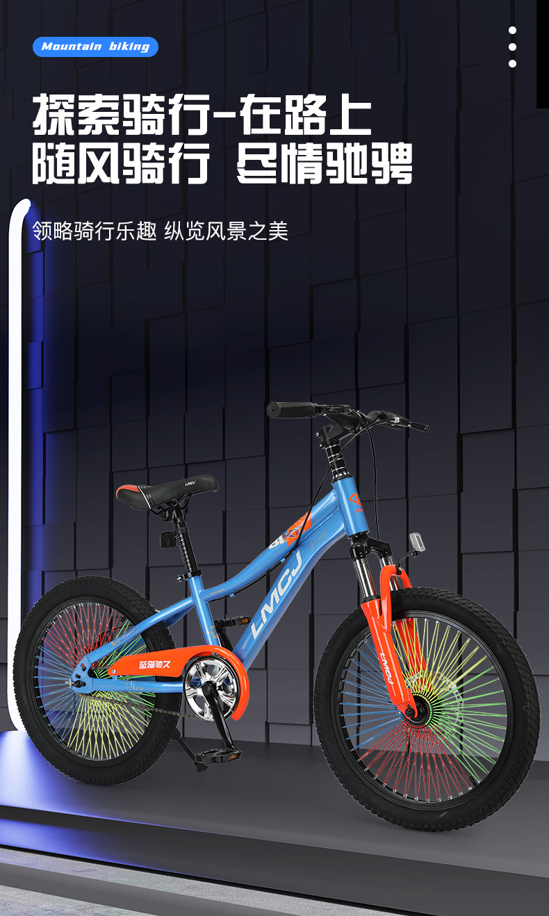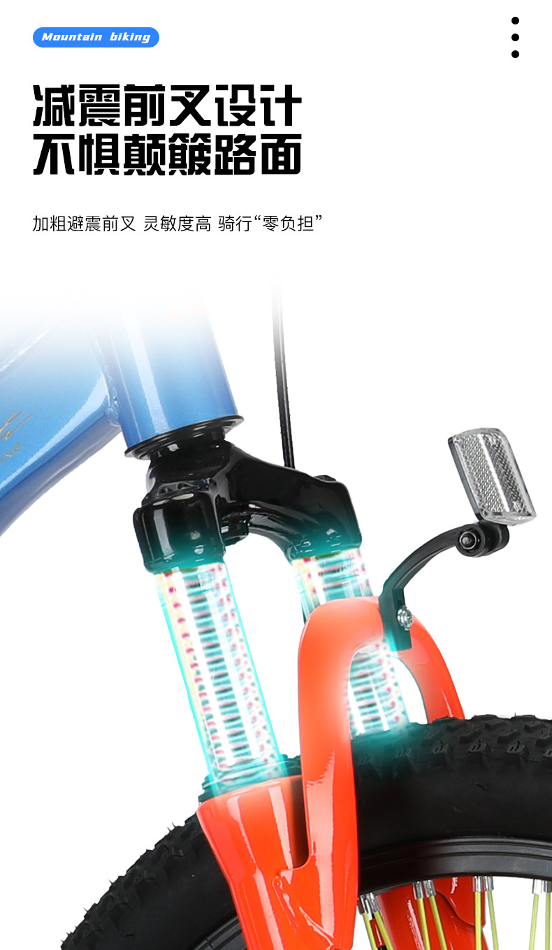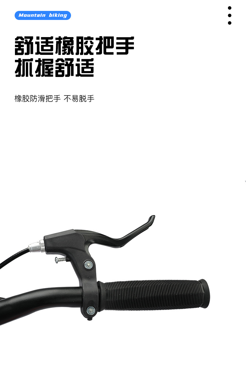 推进模式:链条载重量:80公斤(kg)材质:碳钢车用途:山地车车架结构:整体车制动系统:双碟刹车架类型:无尾车架前叉类型:减震前叉刹车类型:前后碟刹年龄:5-14岁