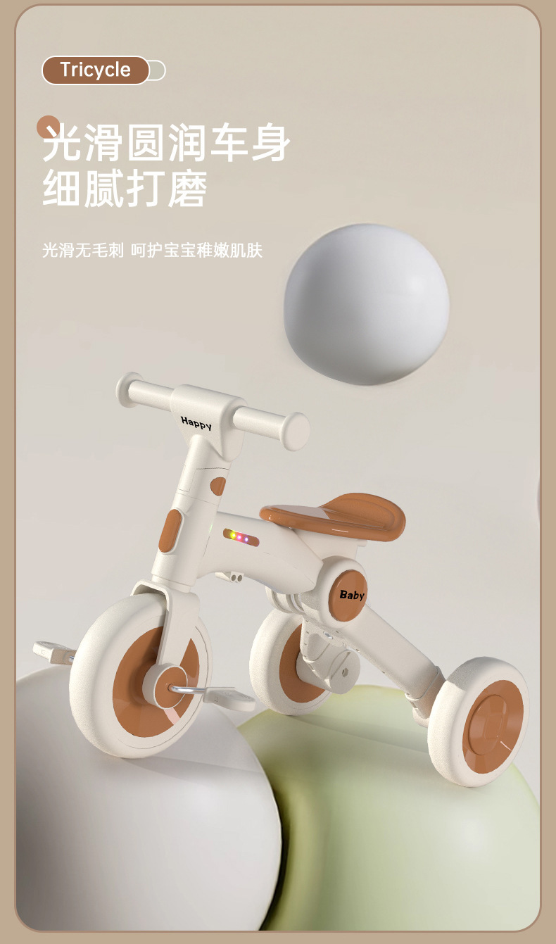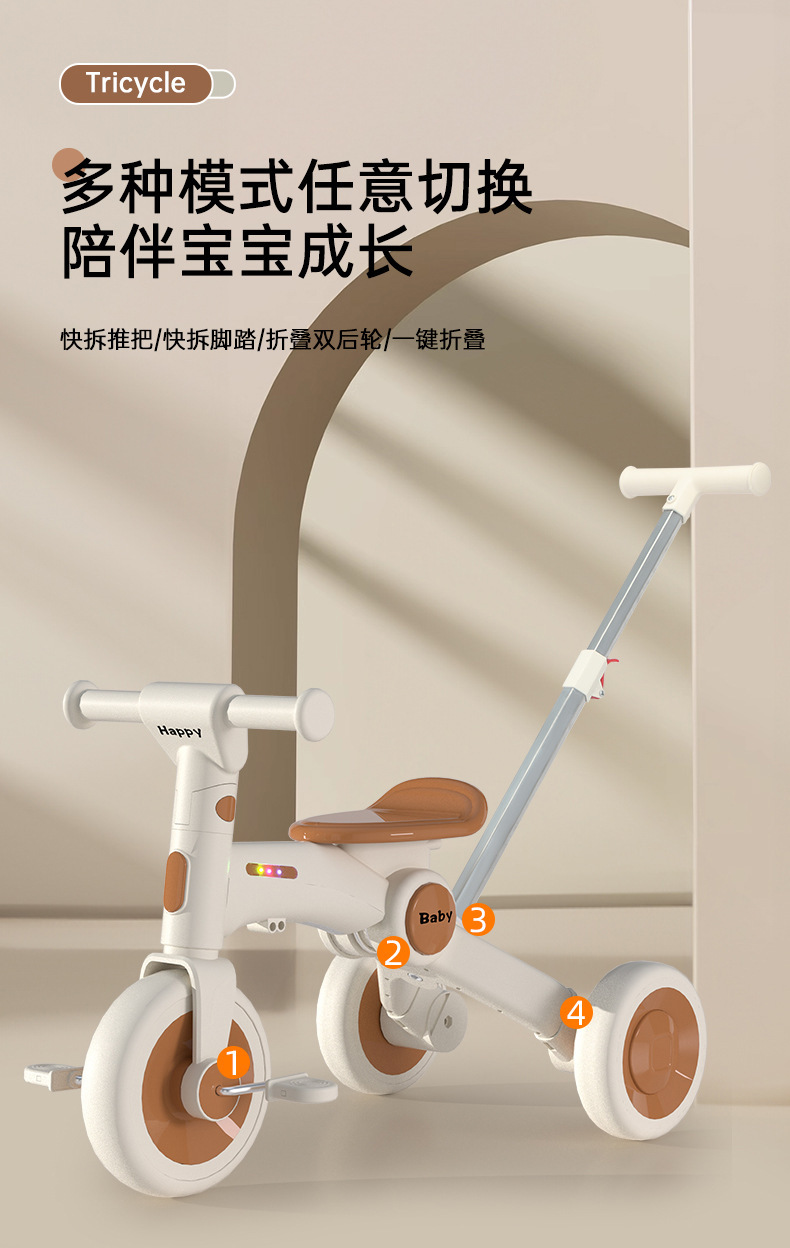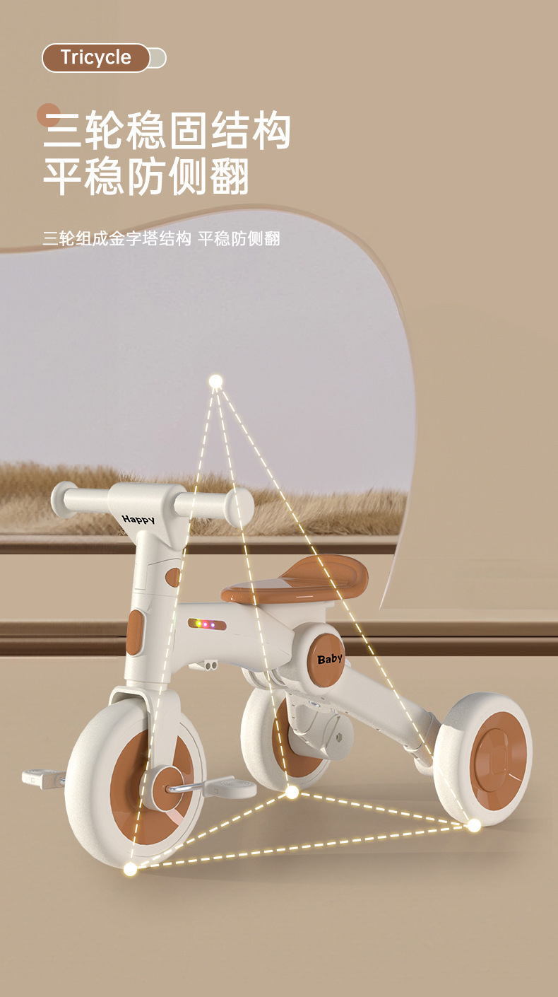 儿童三轮车1-3-6岁平衡车脚踏车可推小孩轻便可折叠滑步车