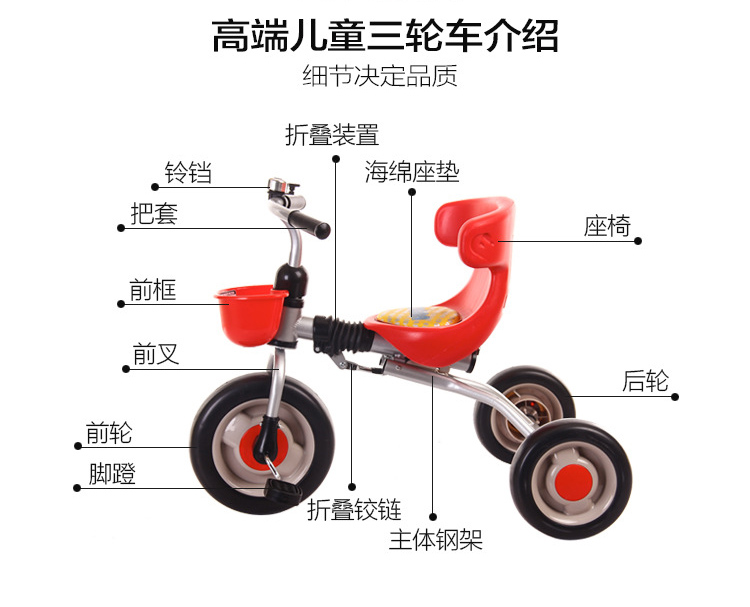 免安装可折叠儿童三轮脚踏车-3岁宝宝自行车童车折叠三轮车