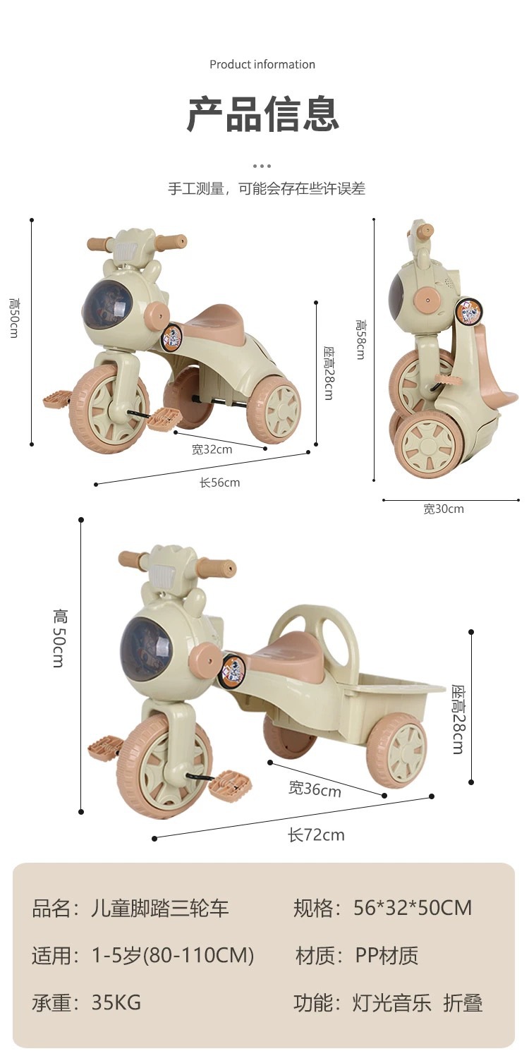 材质:塑料功能:带斗 带灯光音乐适用年龄:1-3岁,3-6岁童车车轮类型:发泡轮有无储物篮:有