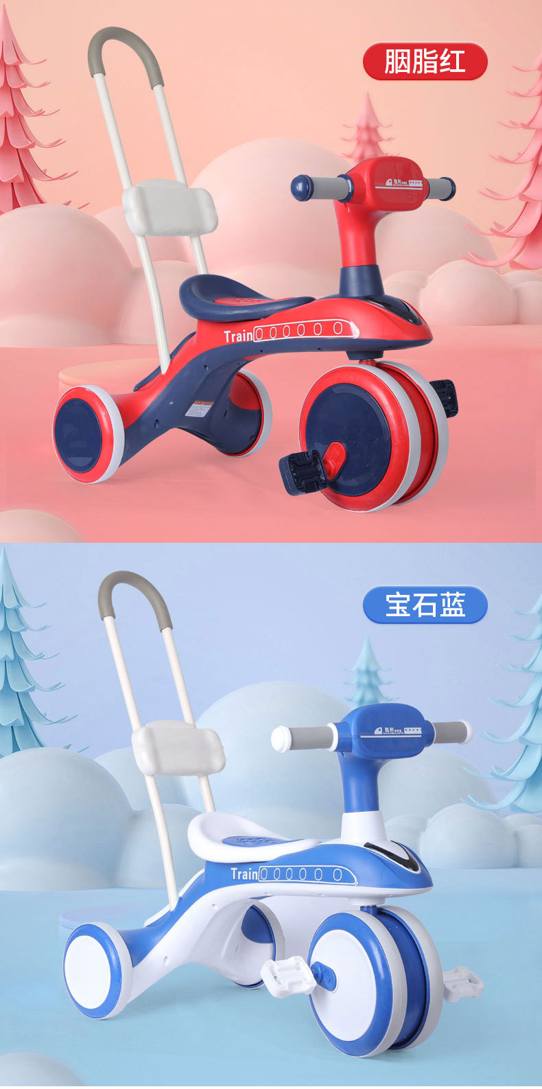儿童三轮脚踏车骑滑推一体多种功能三轮车音乐灯光滑滑车宝宝手推车